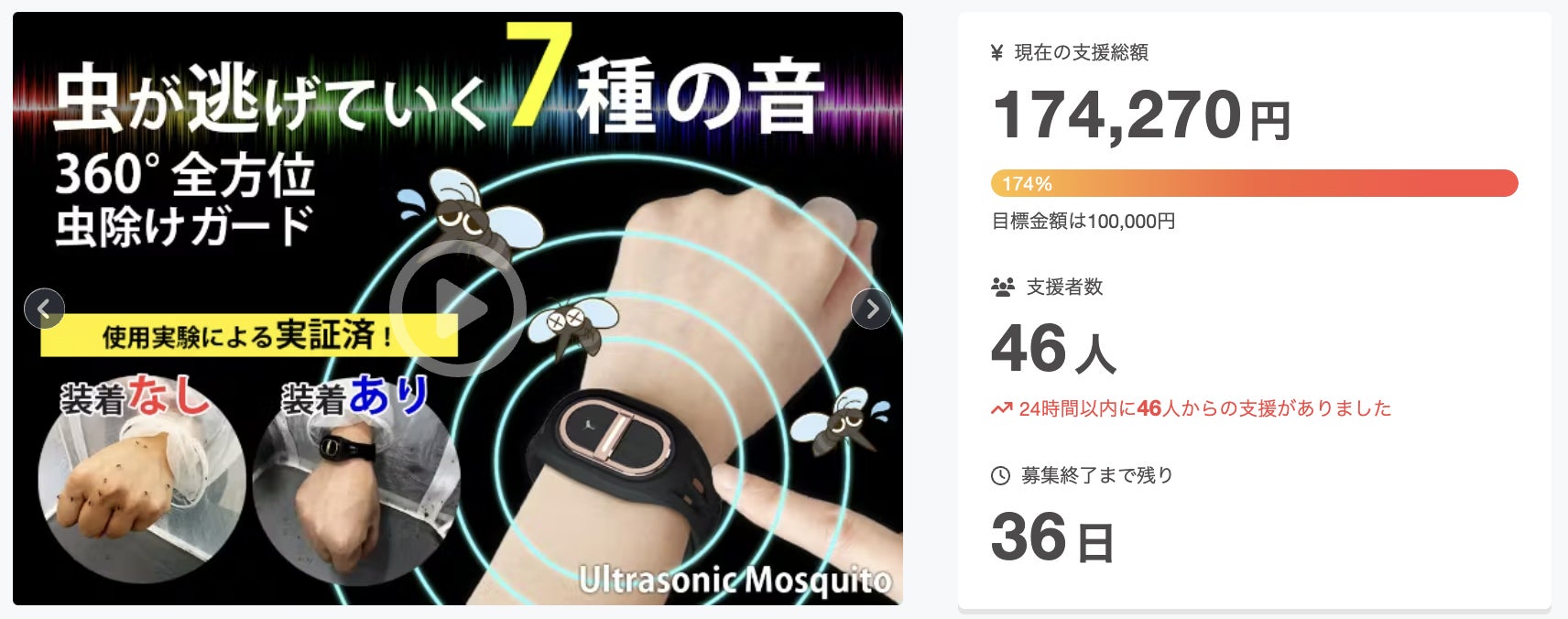 皆様、こんばんは!Bright DIYチームです。夏になると蚊に悩まされることが多くなりますよね。そんな時に役立つのが「Ultrasonic Mosquito」です。この最新型の虫よけデバイスは、蚊が嫌う音波を利用して、蚊を効果的に寄せ付けません。従来の虫よけとは異なり、化学成分やスプレーを使わずに音波で蚊を撃退できるため、安全で環境にも優しいのが特徴です。蚊が嫌がる音波の仕組みとは?蚊は、非常に敏感な聴覚を持っており、特定の周波数の音波に反応します。これを利用してUltrasonic Mosquitoは、蚊が嫌う音波を発することで、蚊を遠ざける仕組みです。実際のところ、蚊は様々な周波数帯の音波に反応し、特に以下の音波に敏感です:25~100Hz: つばめの羽ばたき音に近い周波数100~300Hz: スズメの羽ばたき音に近い周波数300~500Hz: トンボの羽ばたき音に近い周波数500Hz~2kHz: オスの蚊の音に近い周波数(交尾後のメス蚊はオスを避ける習性があります)2~5kHz: 鳥の音波に近い周波数5~10kHz: コウモリの放つ音に近い周波数18~50kHz: 超音波(これが特に効果的とされています)これらの音波は、蚊の感覚システムに干渉し、蚊が不快に感じることで、蚊を寄せ付けなくなります。さらに、この音波は人体やペットには全く害がない安全設計であるため、安心して使用できます。長時間駆動Ultrasonic Mosquitoの最も魅力的な特徴の一つは、驚くべきバッテリー持ちです。充電を一度行うだけで、最大6日間もの連続使用が可能となり、長時間にわたって蚊を効果的に防ぐことができます。この優れたバッテリー性能により、アウトドア活動や旅行、就寝中など、長時間使用する場面でも心配なく快適な環境を維持できます。Ultrasonic Mosquitoは、蚊が嫌う音波を活用した新しい虫よけのデバイスです。音波が蚊を追い払う一方で、人体やペットには影響を与えず、安心して使うことができます。さらに、長時間使用できるため、夏の間、蚊に悩まされることなく快適に過ごすことができます。この夏、新しい虫よけ体験をぜひ試してみてください!以上、Bright DIYチームでした!ご興味のある方はこの機会をお見逃しなく!https://camp-fire.jp/projects/view/801298Brightチームは、当プロジェクトをもっと多くの方に知っていただきたいと考えております。よかったら、SNSでのシェア・拡散をお願い致します。#ultrasonicmosquito #brightdiyどうぞよろしくお願い致します。Brightチーム