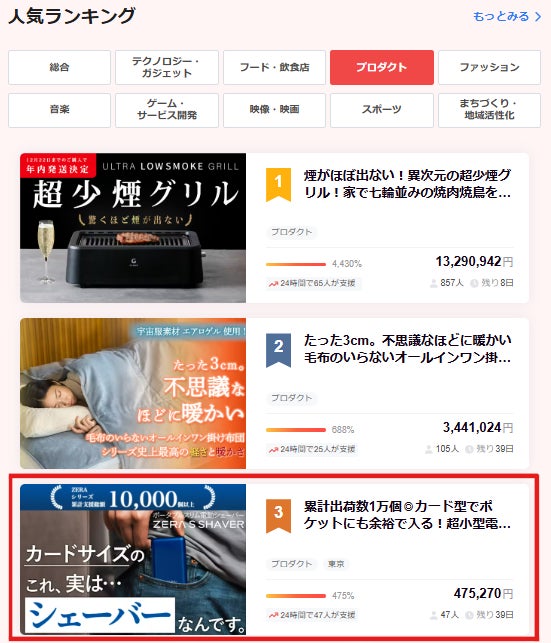 また本日のCampfireランキングで 3 位!