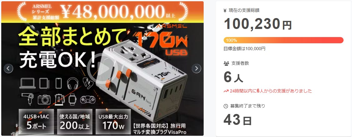この度は「【累計出荷数2千個以上】海外でも国内でもどこでも充電できるマルチ変換プラグ!」に支援頂き誠にありがとうございます!