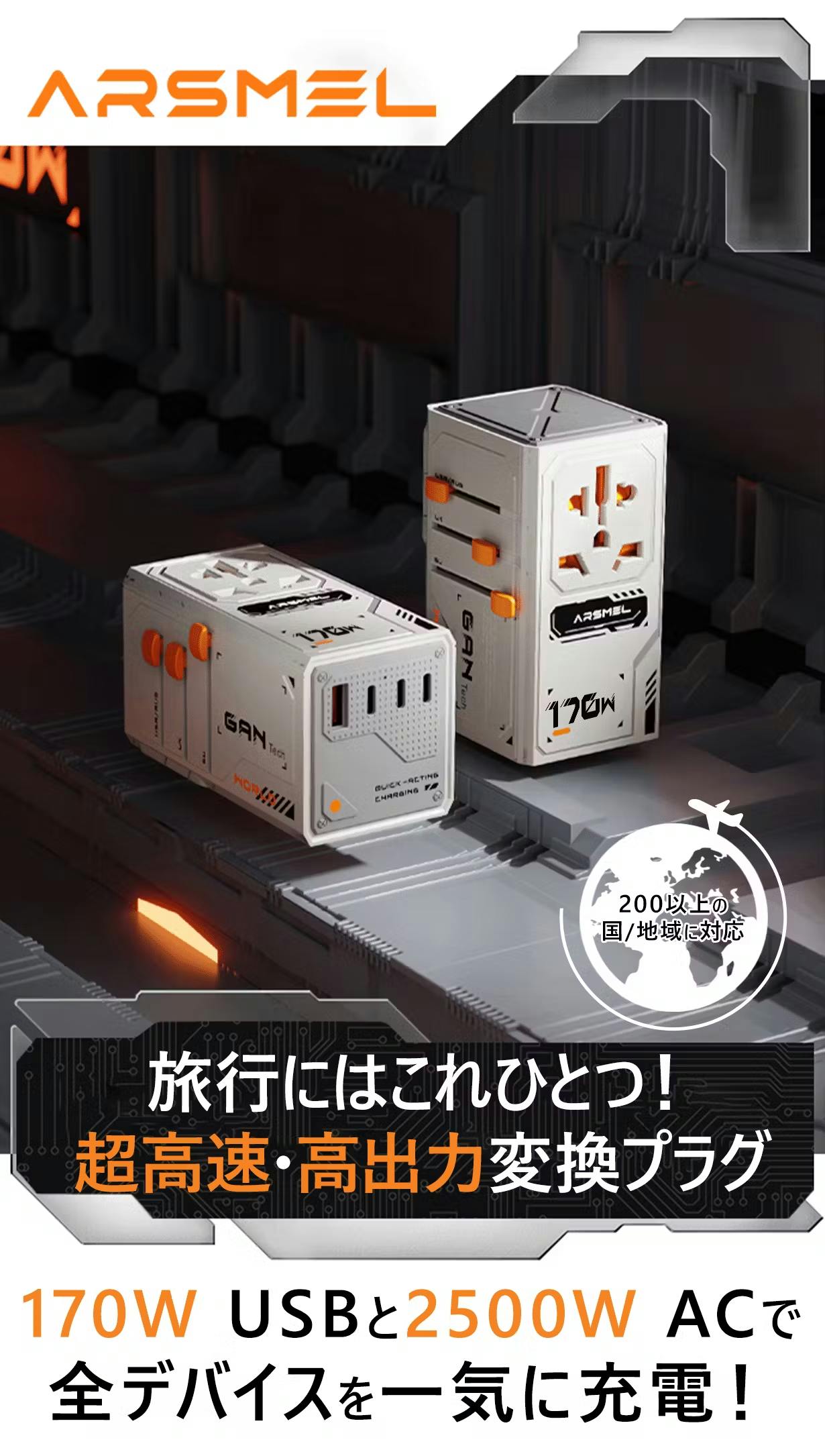 VisaPro 170Wは、170WのUSB出力と2500WのAC出力を持つこの変換プラグは、世界中200カ国以上の電源に対応しており、どんな国へ行っても電力の心配をする必要がありません。旅行先での必要な機器をすべてこの一台で充電することが可能です。特に、ノートパソコンやスマートフォン、タブレットといった複数のデバイスを持ち歩く現代のトラベラーには最適なソリューションと言えるでしょう。