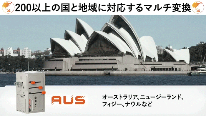 オーストラリアでは、Iタイプのプラグ(2ピン、V字型)を使用しているため、これにも対応しています。オーストラリアでの利用も、VisaPro 170Wがあれば便利に充電が可能です。