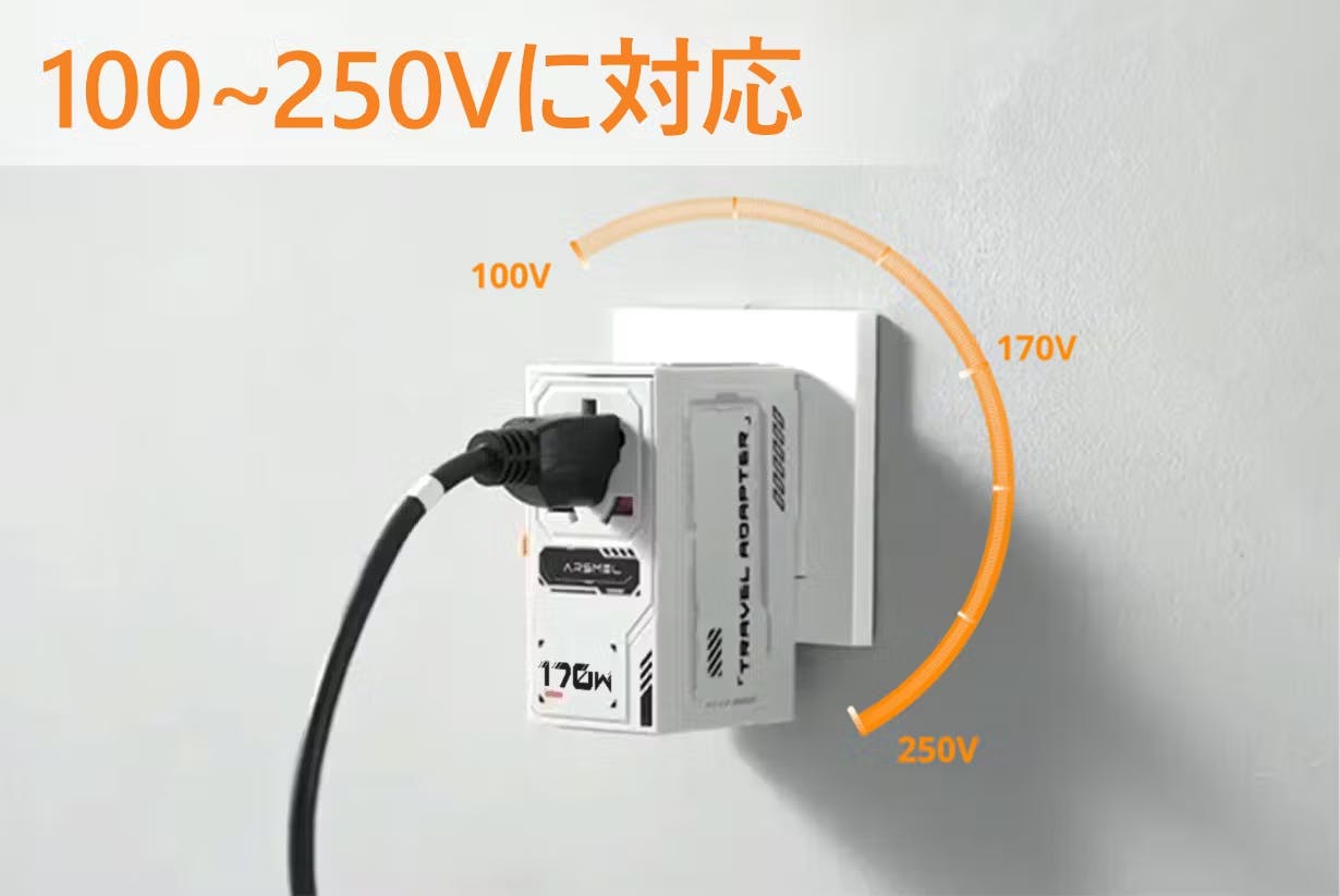 VisaPro 170Wは、100V~250Vの広範囲な電圧に対応しています。これにより、旅行や出張で異なる国に行く際にも、電圧の心配をすることなく使用することができます。例えば、日本、アメリカ、ヨーロッパ、アジアなど、世界中どこでも使えるため、旅行が多い方や国際的に活躍しているビジネスパーソンにとって非常に便利です。