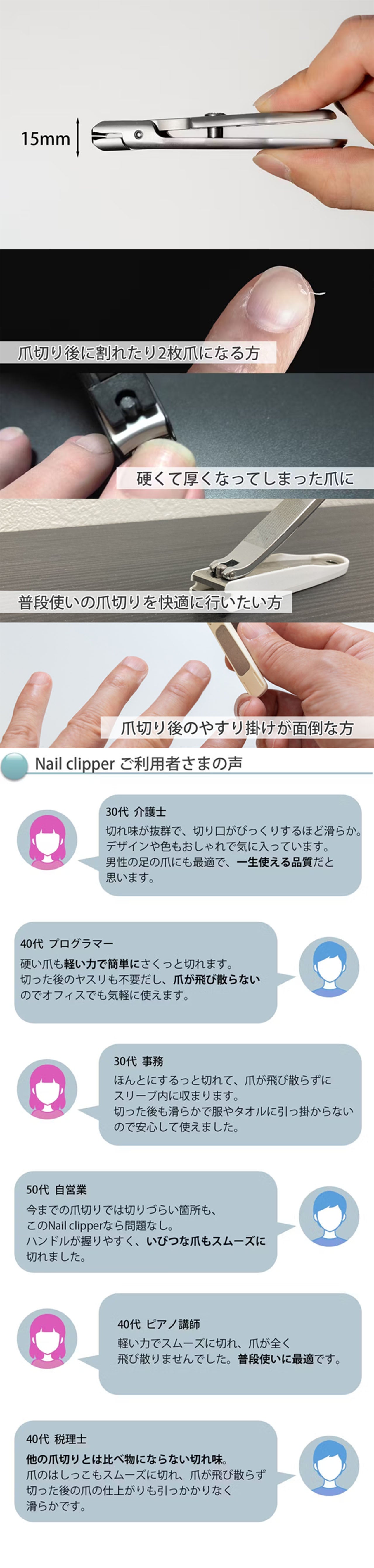 硬くて厚い爪もスパッと切れる!爪が飛び散らない・やすり掛けもいらない究極の爪切り