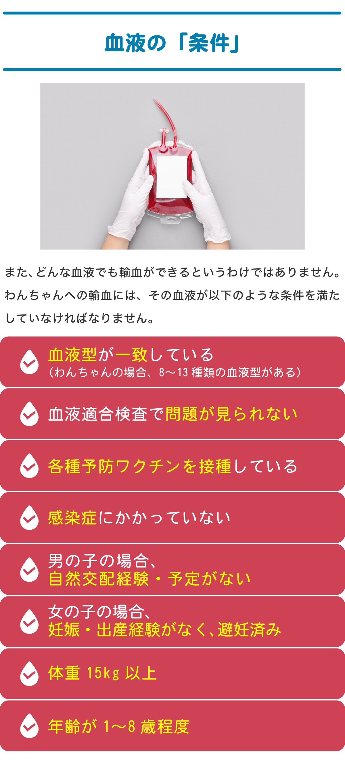 命の危機が迫り、輸血が必要になった時、家族であるわんちゃんを守れるのは、飼い主さんだけ。