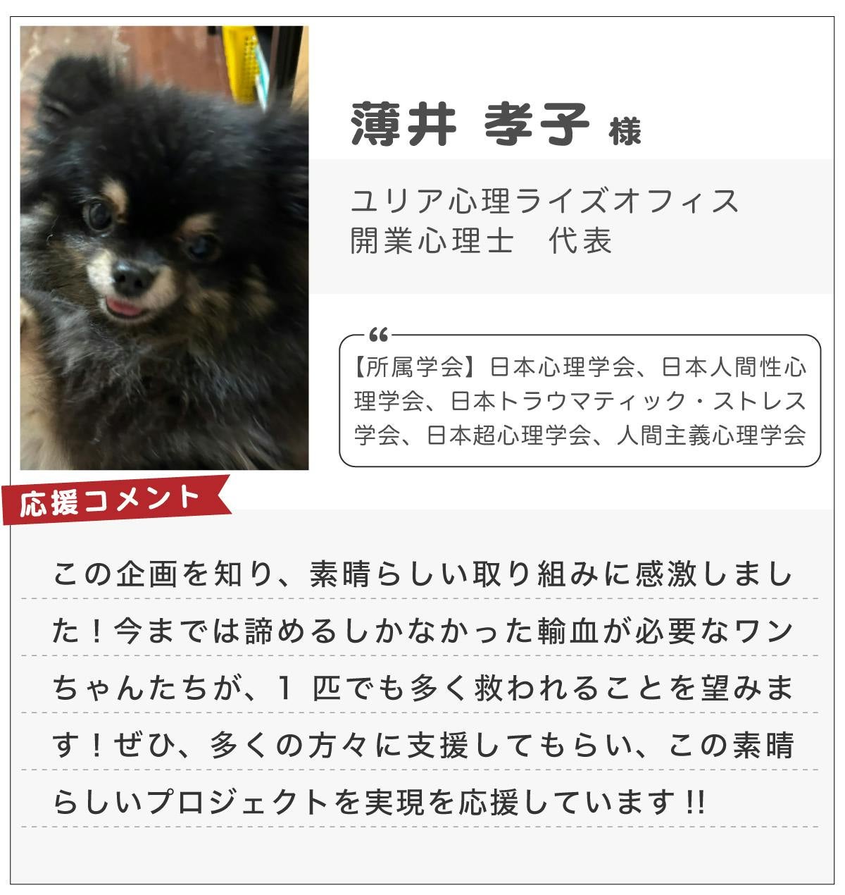 2024/12/22 13:00皆様、温かい応援、ご支援、拡散、本当にありがとうございます。昨日、このプロジェクトのファーストゴール150万サクセス致しました!これも全て、応援、ご支援くださった皆様のおかげです。感謝しております。輸血で助けていただいた私の愛犬マロンのために、そして助けてくださったわんちゃん、飼い主さんのためにも、自分を奮い立たせて1人でプロジェクトを立ち上げたものの、ただの医師がどこまでできるのか、不安でしかありませんでした。しかし、皆様が一緒に応援、そしてご支援してくださったおかげで、自分のプロジェクト立ち上げが間違いではなかったと、思うことができました。本当にありがとうございます。今からもまだまだ継続をしていくために、ラスト5日、ネクストゴールにむけて走っていきます。みんなの大切な家族を、みんなで守っていく、そんな優しい世界を目指して。更なる応援、ご支援、拡散よろしくお願い致します。 もっと見る