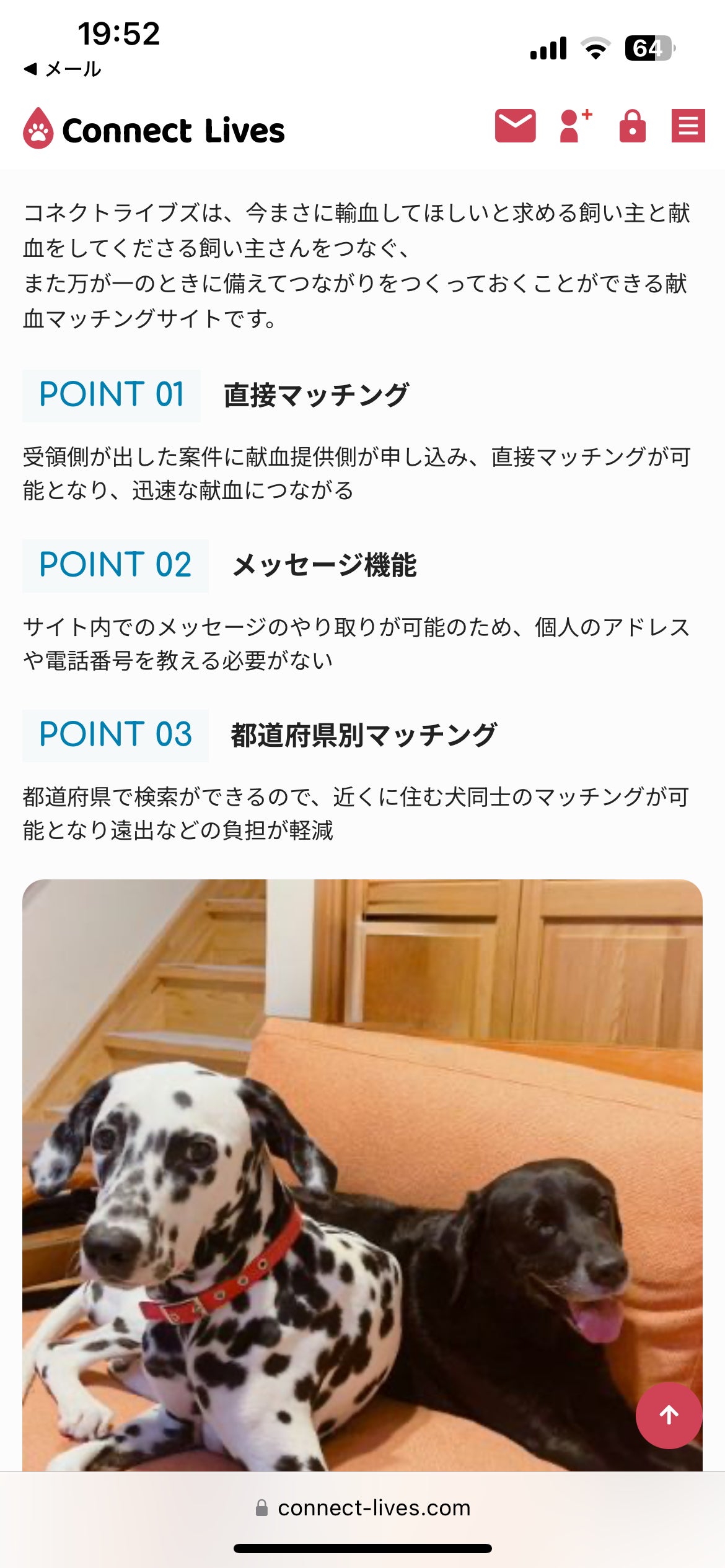 しかしコネクトライブズがあれば、近隣で輸血に協力してくれるわんちゃんと飼い主さんをすぐに見つけることが可能です。