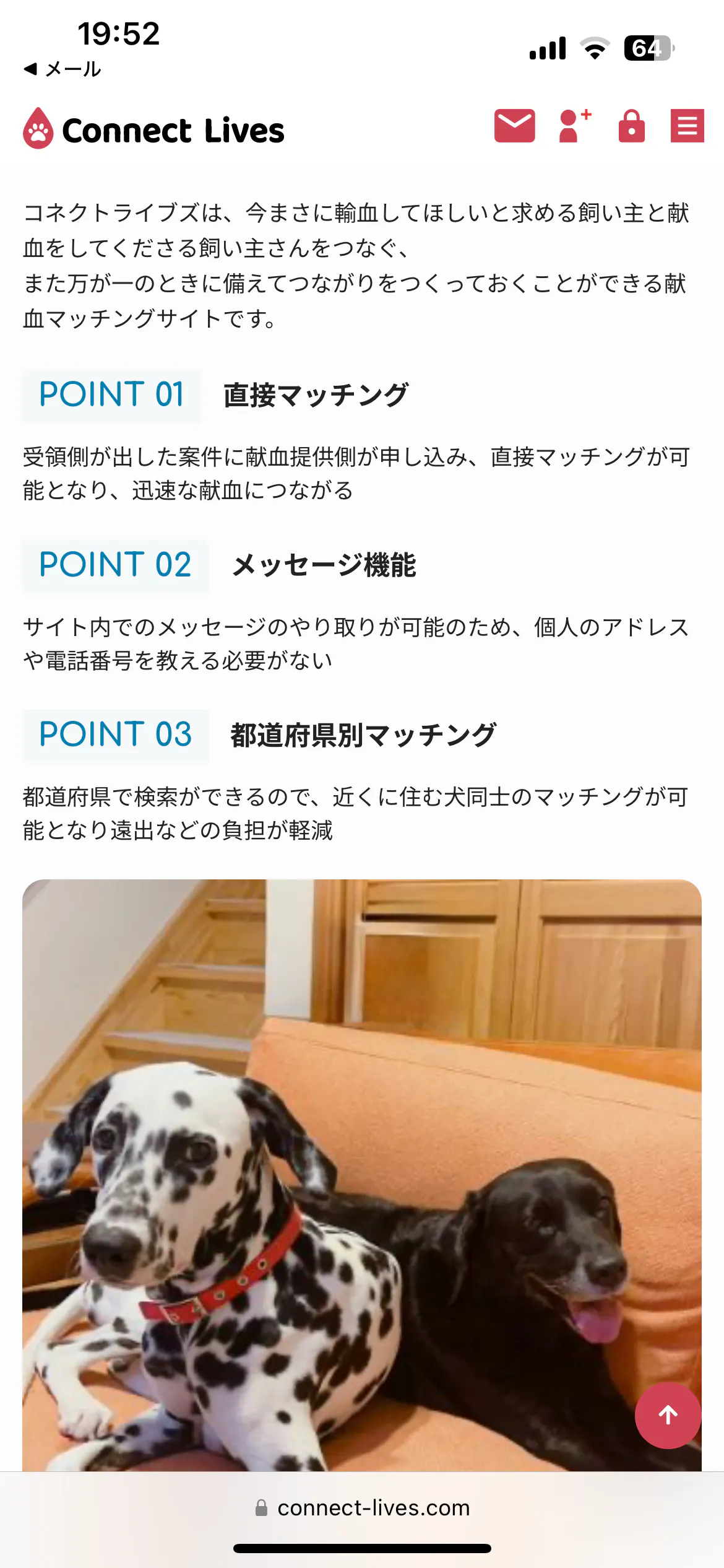 私は今回、とあることがきっかけで、わんちゃんのための献血マッチングサイト「コネクトライブズ」の立ち上げを決意しました。
