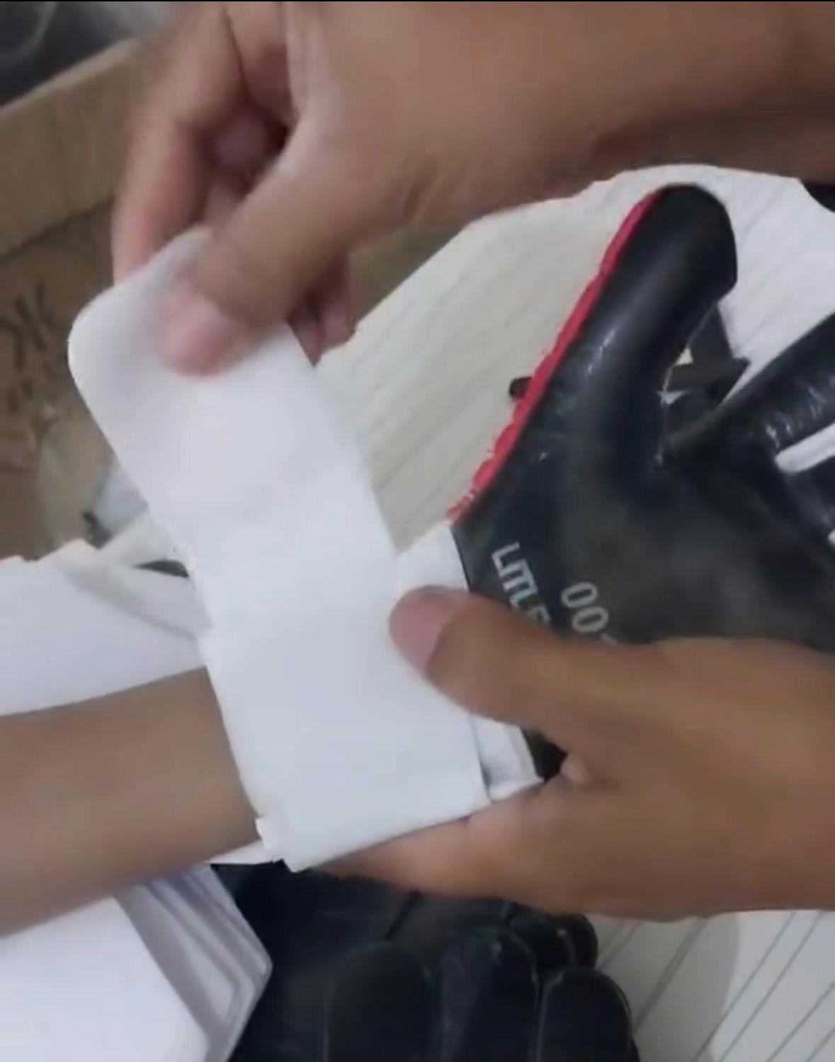 これは、手の小さなジュニアキーパーを想定した時に骨も成長段階で、ボールをキャッチした際の手への衝撃を緩和と、万が一手を蹴られた際の怪我のリスクを少しでも下げたい思いで使いました。