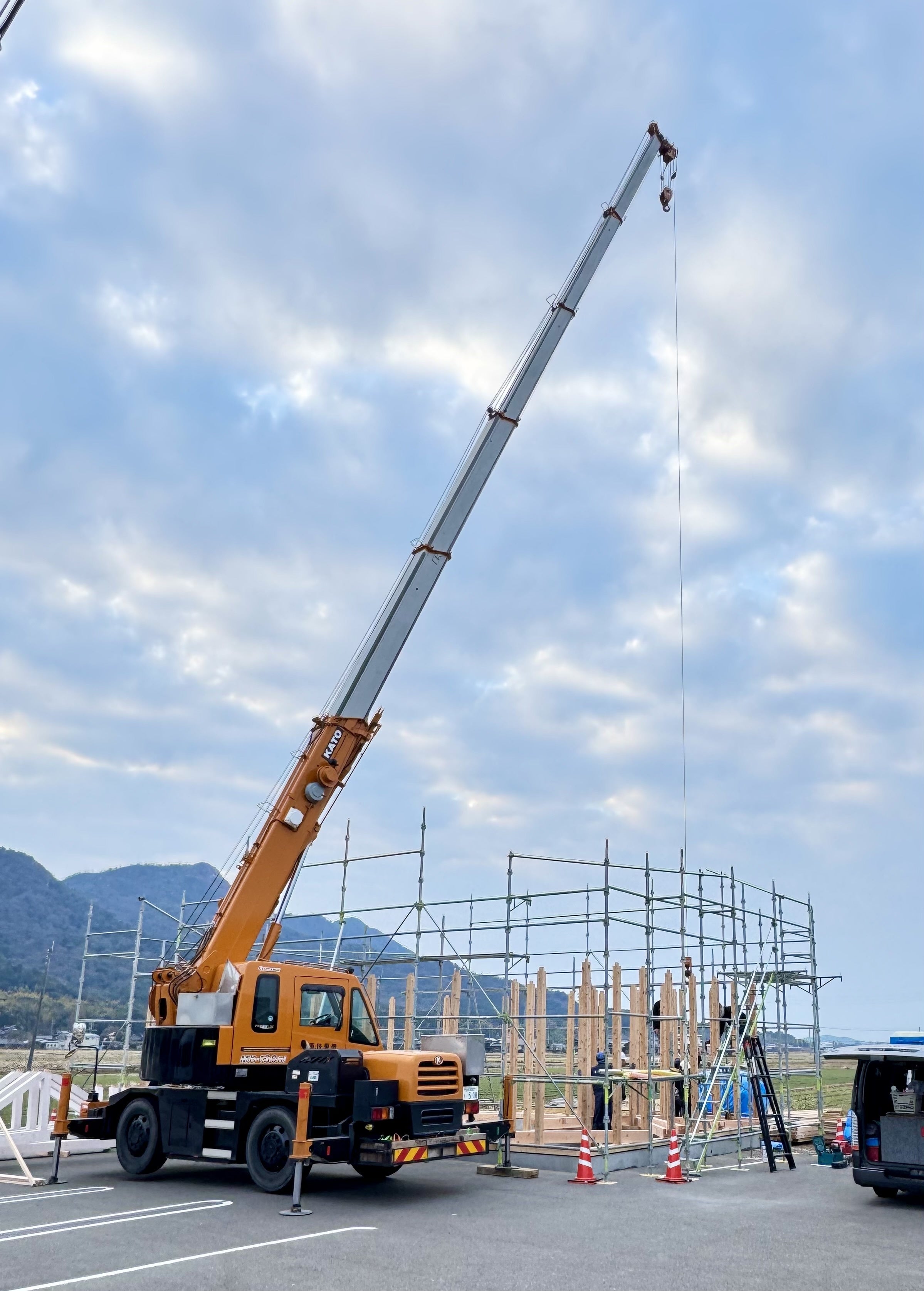 大きなクレーン車であっという間に木材が組み立てられる光景は圧巻でした!!