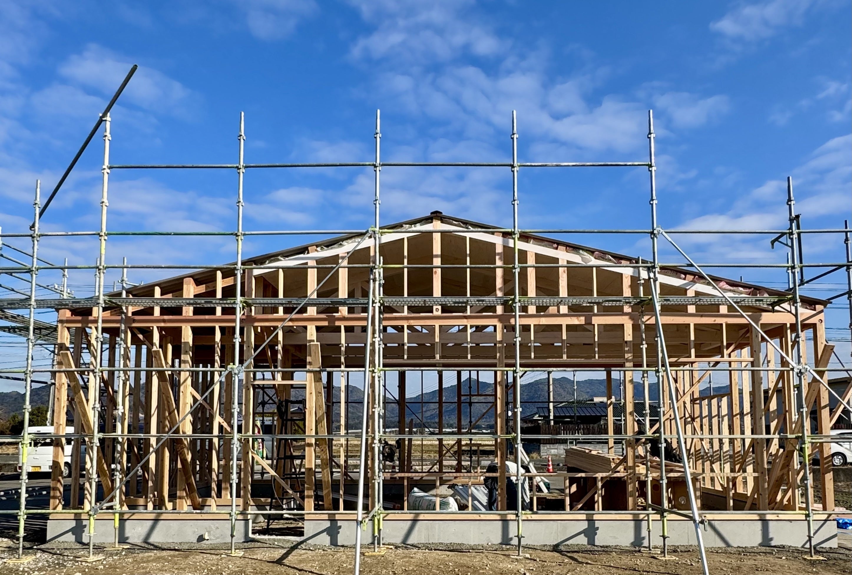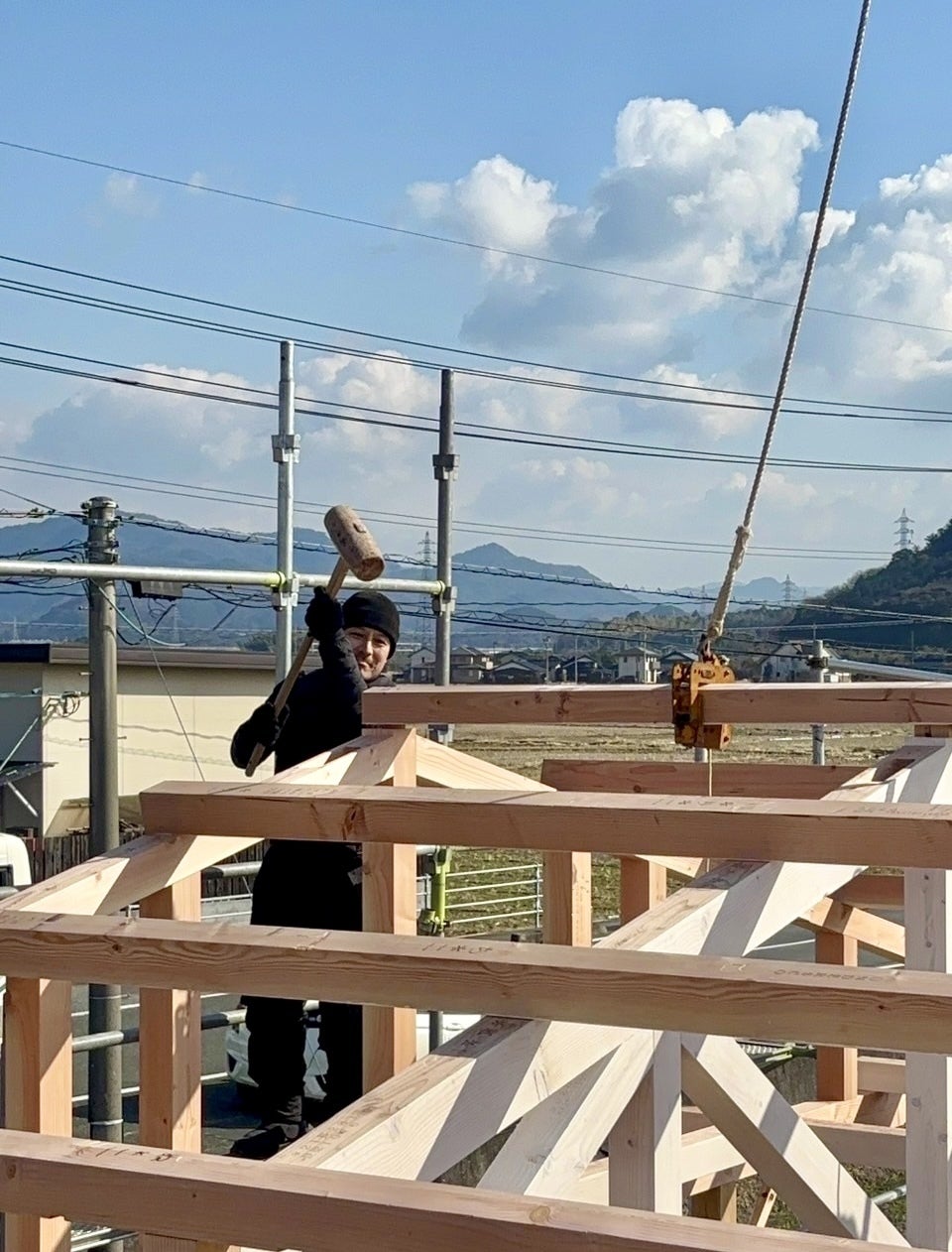 昨日、名田島食堂の棟上げが無事に終了致しました。