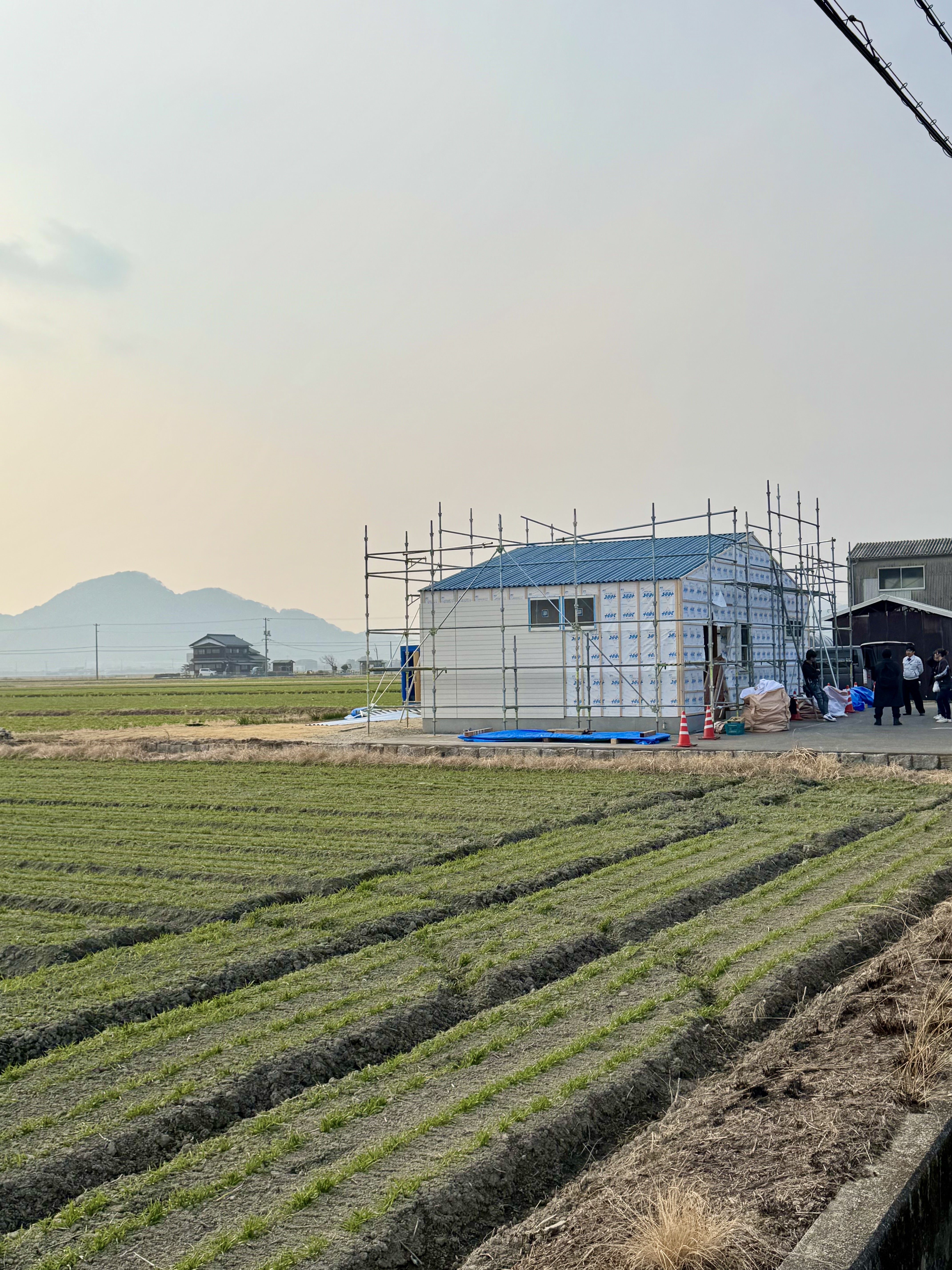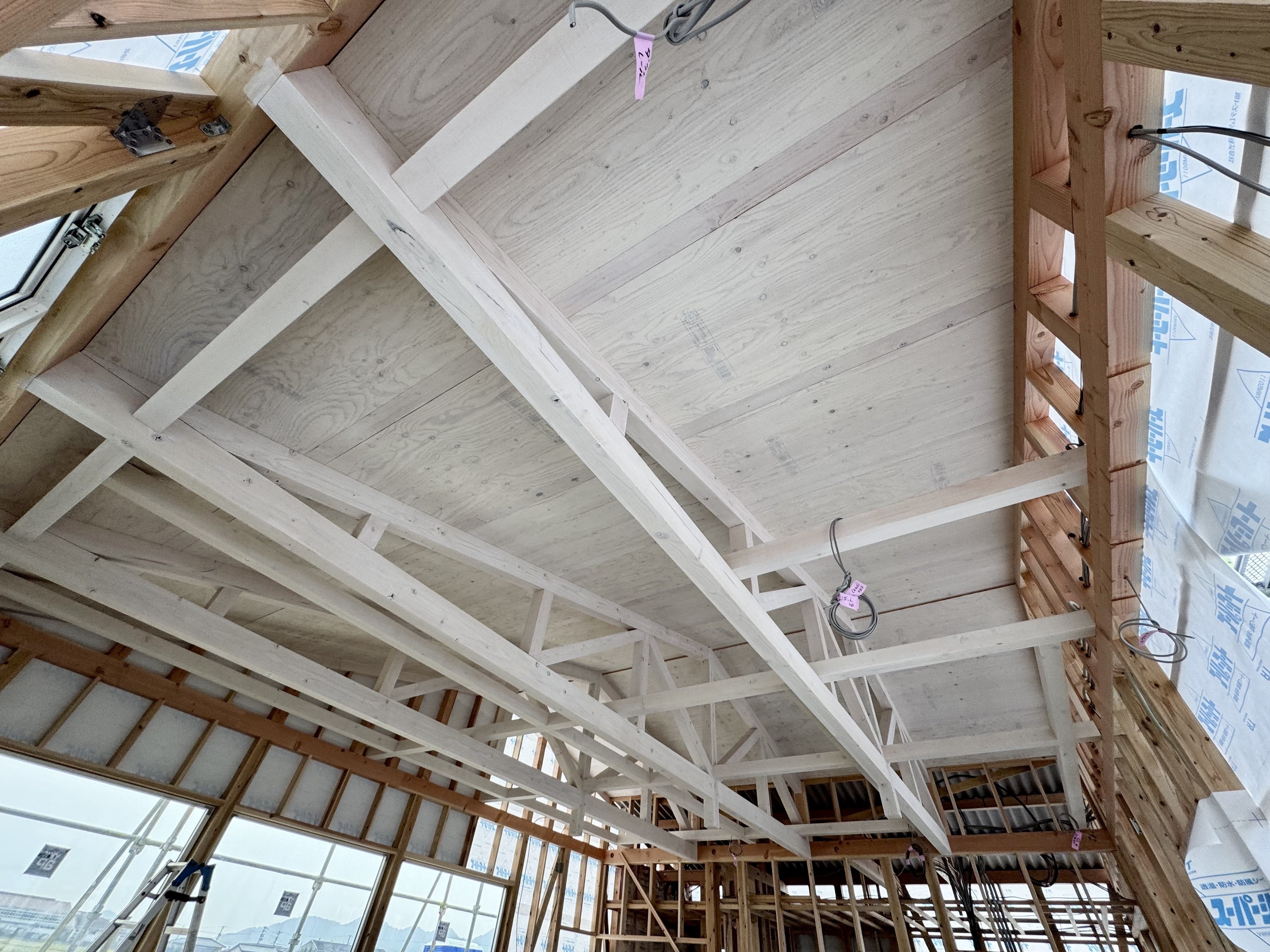 本日は店内の様子も少しだけご紹介します。天井は合掌作りになっており、木材は白色にペイントしてもらいました。