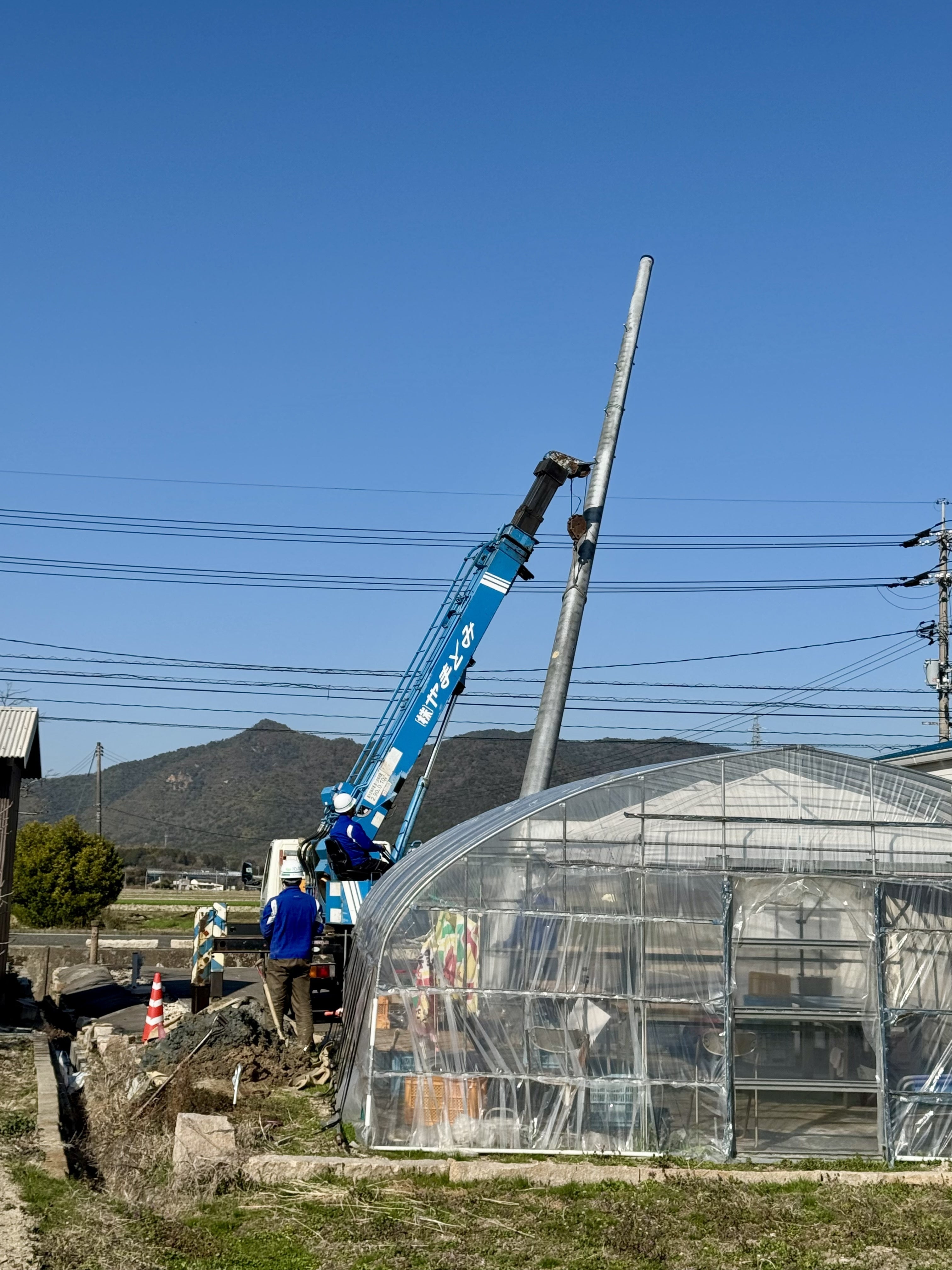 初めて電柱工事を拝見したのですが、なかなかの迫力でした!