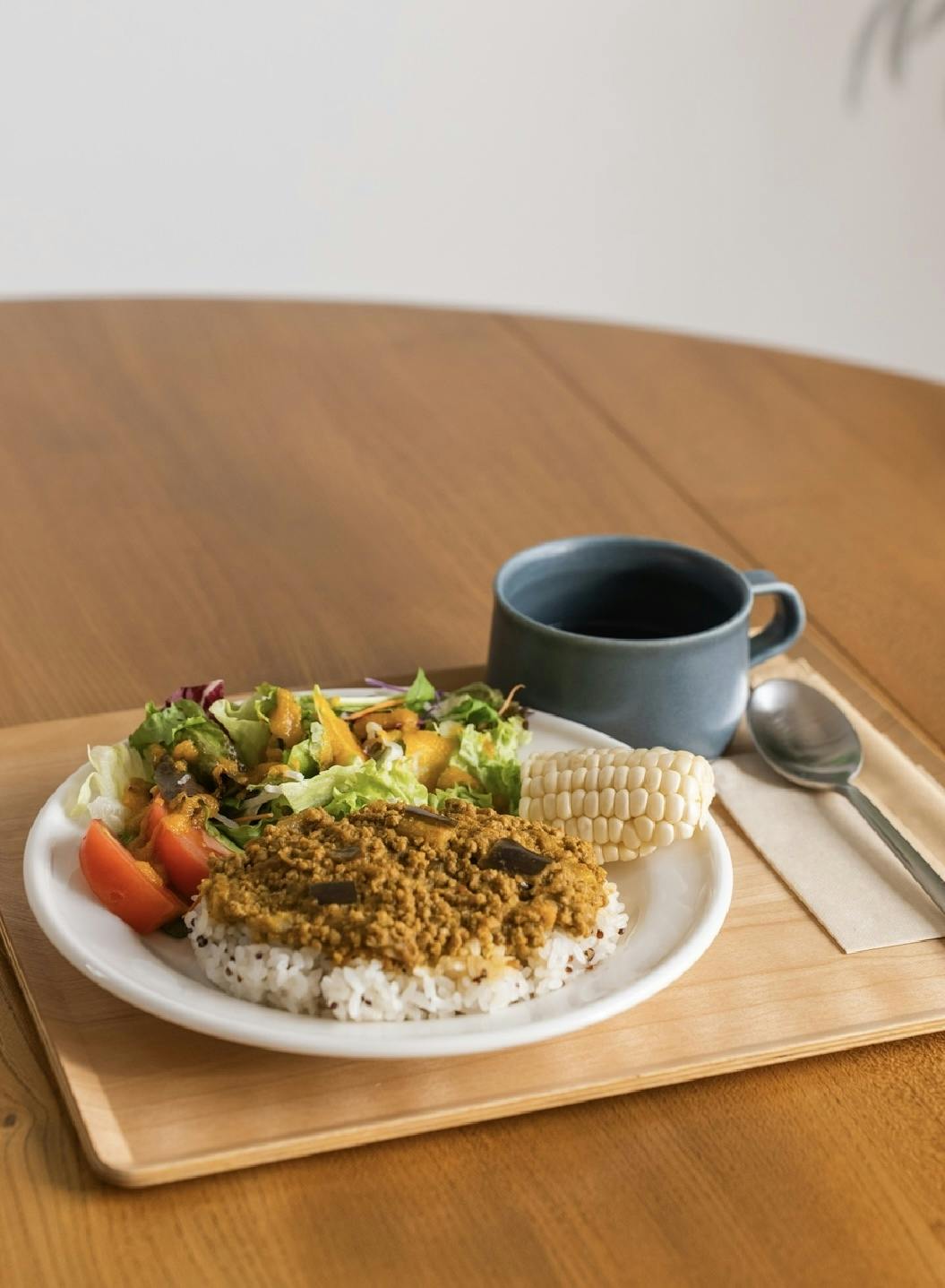 (写真はスパイスキーマカレー&とうもろこしのランチセットです)