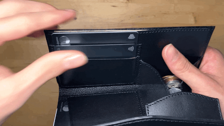 その下にあるカードポケットには、取り出す頻度の低いカードや絶対に無くしたくないカード(身分証明書)(限度額が大きいカード)を入れています↑