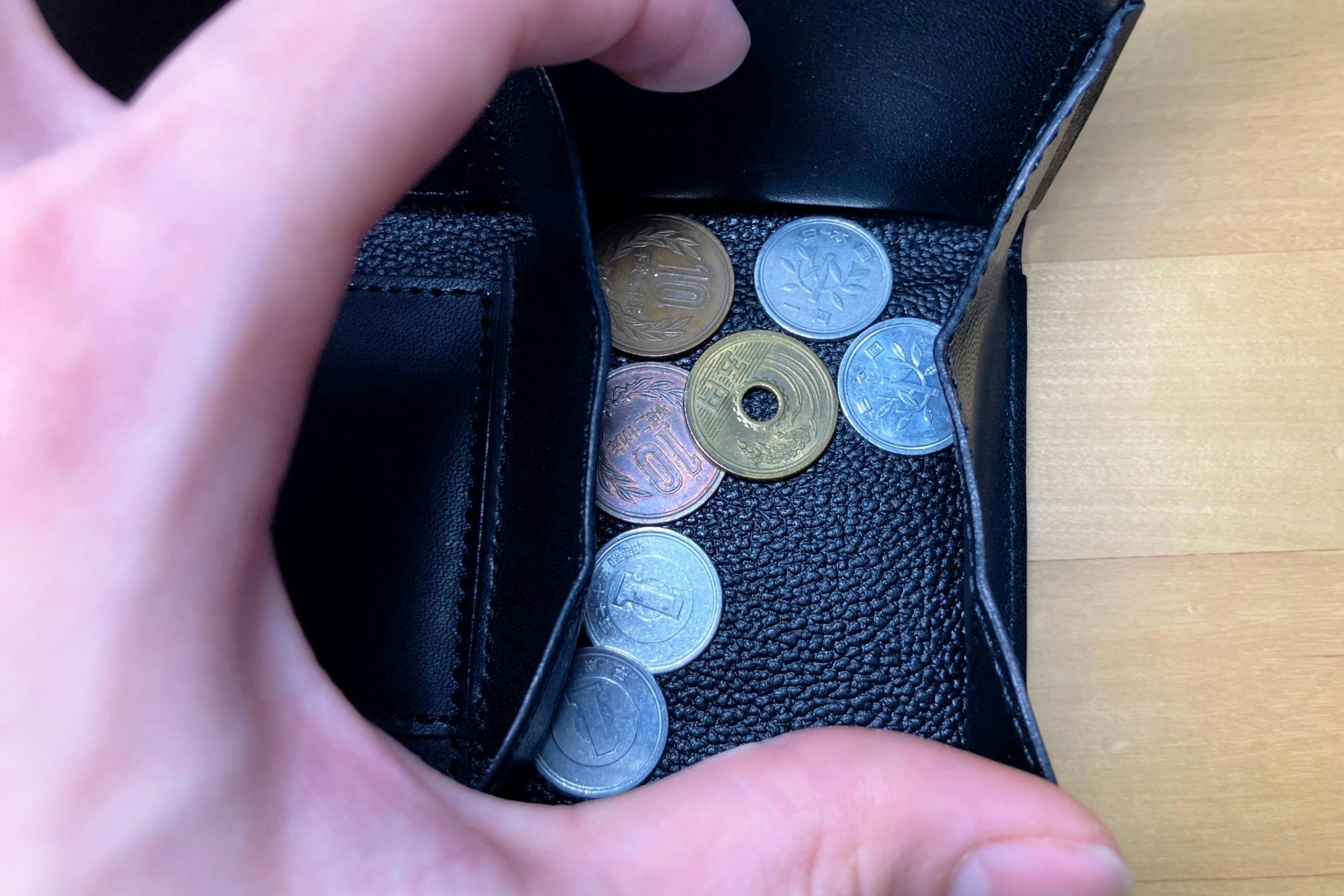 小銭の推奨枚数は、12枚程度となっておりますが、個人的に20枚以上入れてもあまり問題に感じません。