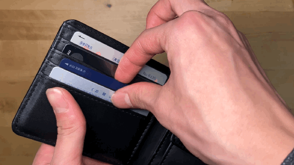 まずお札入れの部分に交通系カードを入れています、これにより改札を通ることが可能になります。