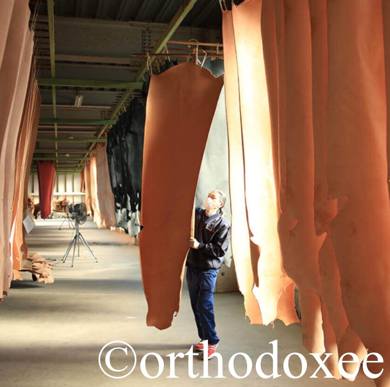 こちらは、100%水染め染色をしただけの古くから行われている伝統的な作り方の革です。