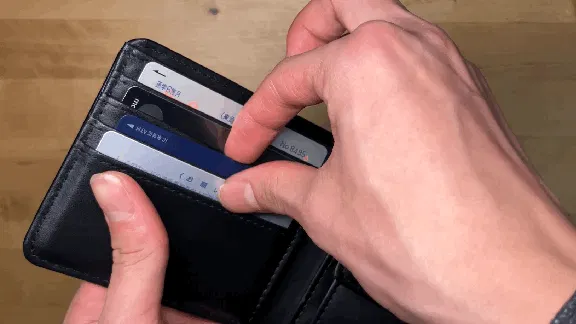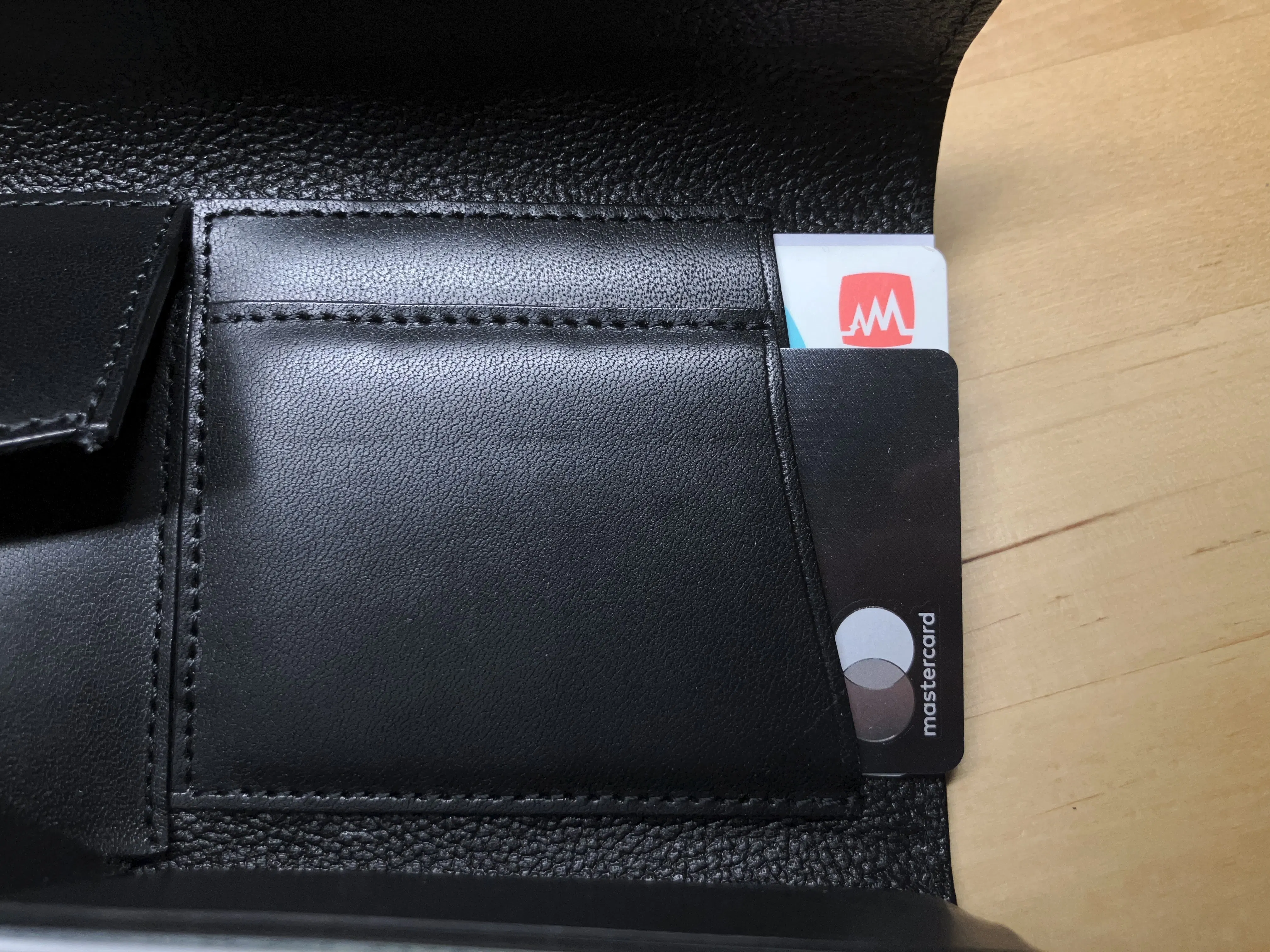 まずお札入れの部分に交通系カードを入れています、これにより改札を通ることが可能になります。