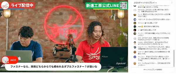 新進工房のYouTubeチャンネルにてライブ配信を行い、チャット欄やアンケート機能を使って4000人以上の方から「極小長財布バタール」を作るにあたって様々なアイデアをいただきました!