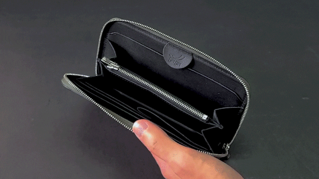 きっかけはお客様の声でした。「流行りに流されてコンパクト財布を買ってみたものの、今まで使っていた長財布に比べて、お会計の時にモタモタしてしまうし、あまり実用的ではなく、使いづらいんです。」私も長年、長財布愛好家としてラウンドジップの長財布を使っていました。コンパクト財布に移行してみたものの、長財布に比べて使いづらく、どうしたものかな~と考えておりました。考えて考えて考えていれば、「ハッ!!」と気づきました。自分が財布職人であるということに。笑それと同時に「ないなら作ればいいんだという事に。」そしてようやく答えにたどり着きました。