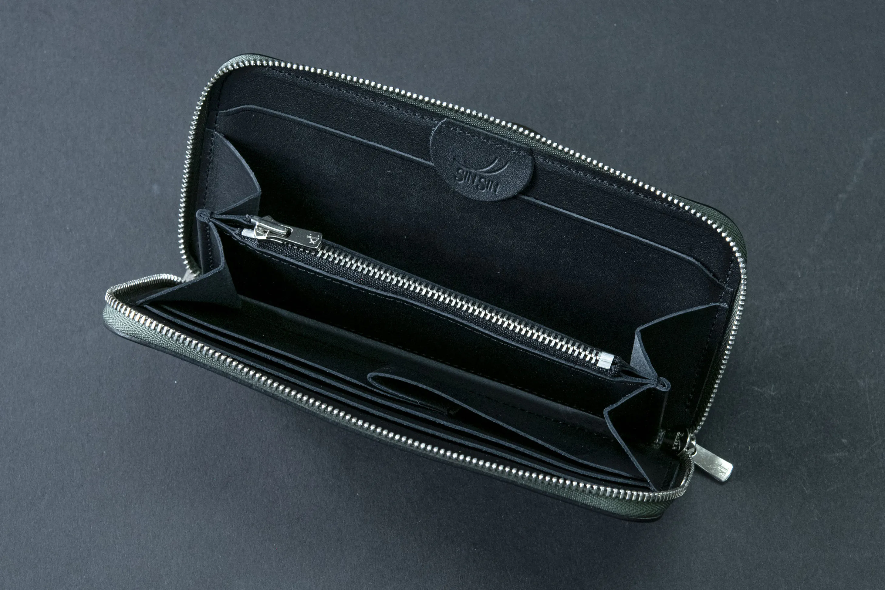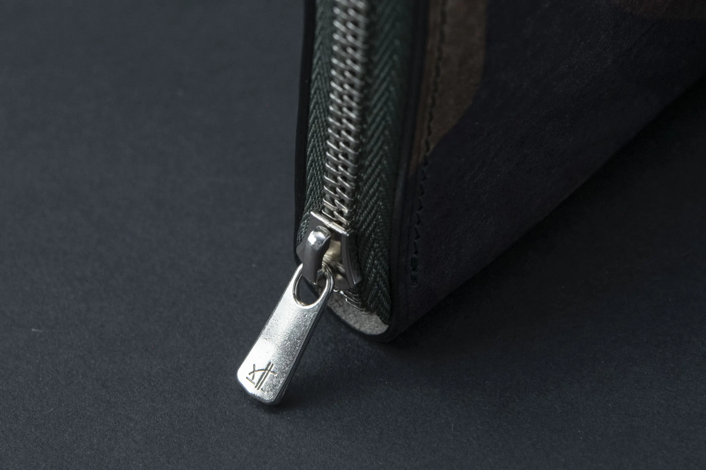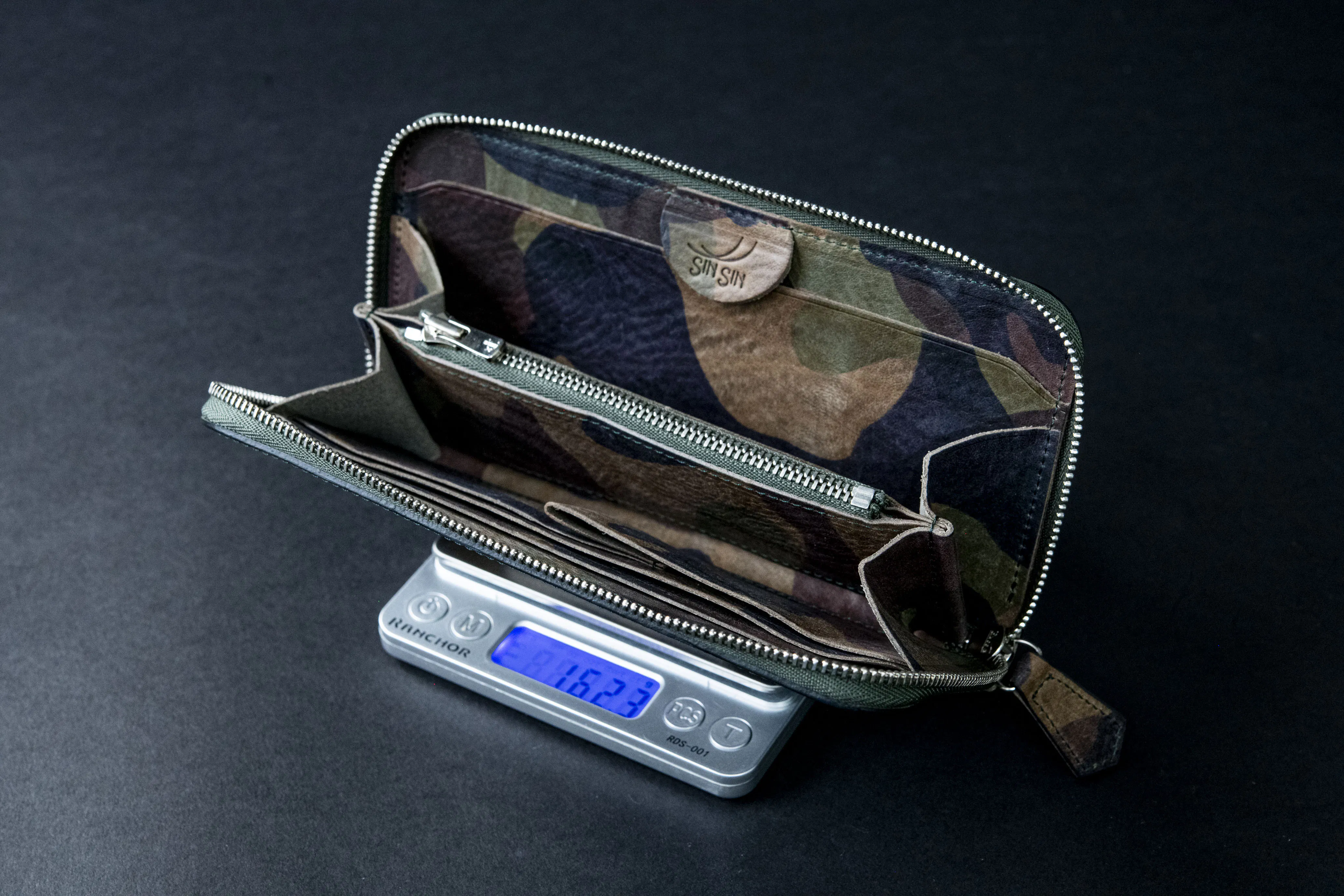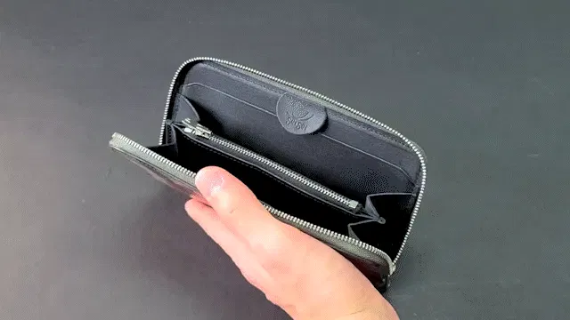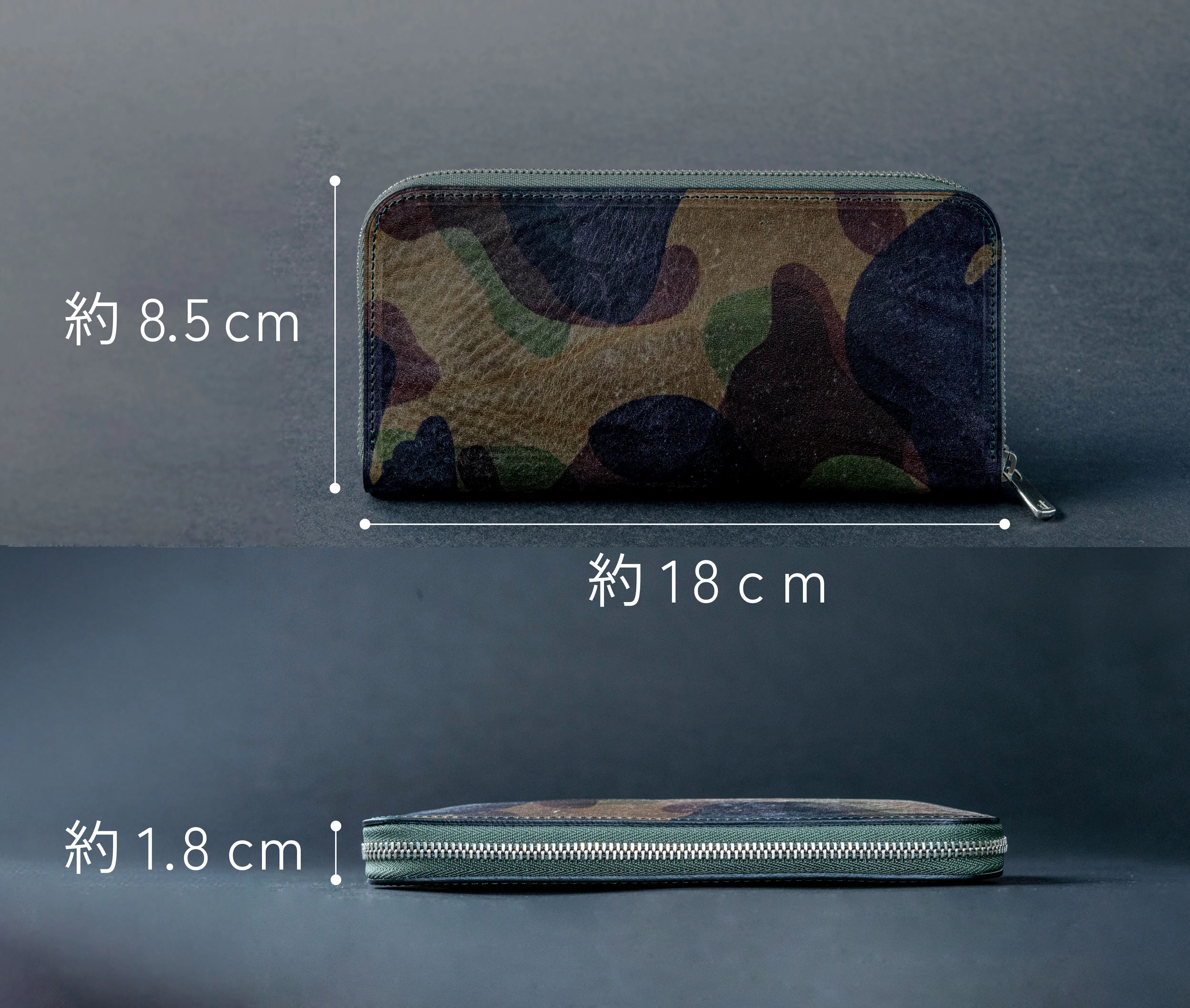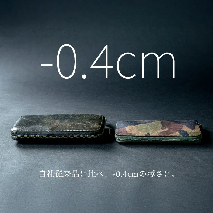 「キャッシュレス時代の極小長財布」をテーマに、5万本以上の財布を作った実績のある財布職人の私たちが試行錯誤を重ねて、「もうこれ以上小さくするのは無理!!」と音をあげた、極小のラウンドジップ長財布です。