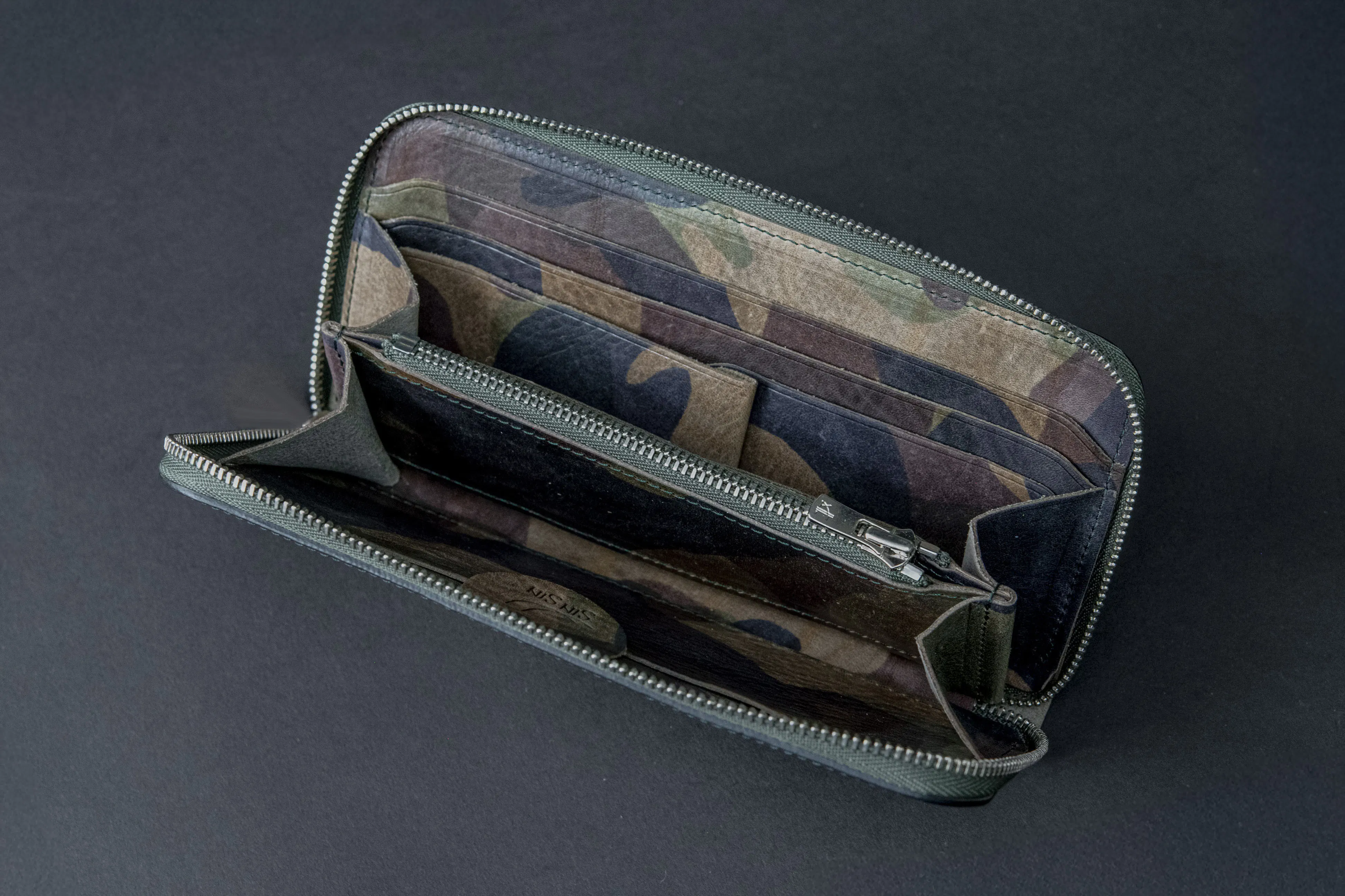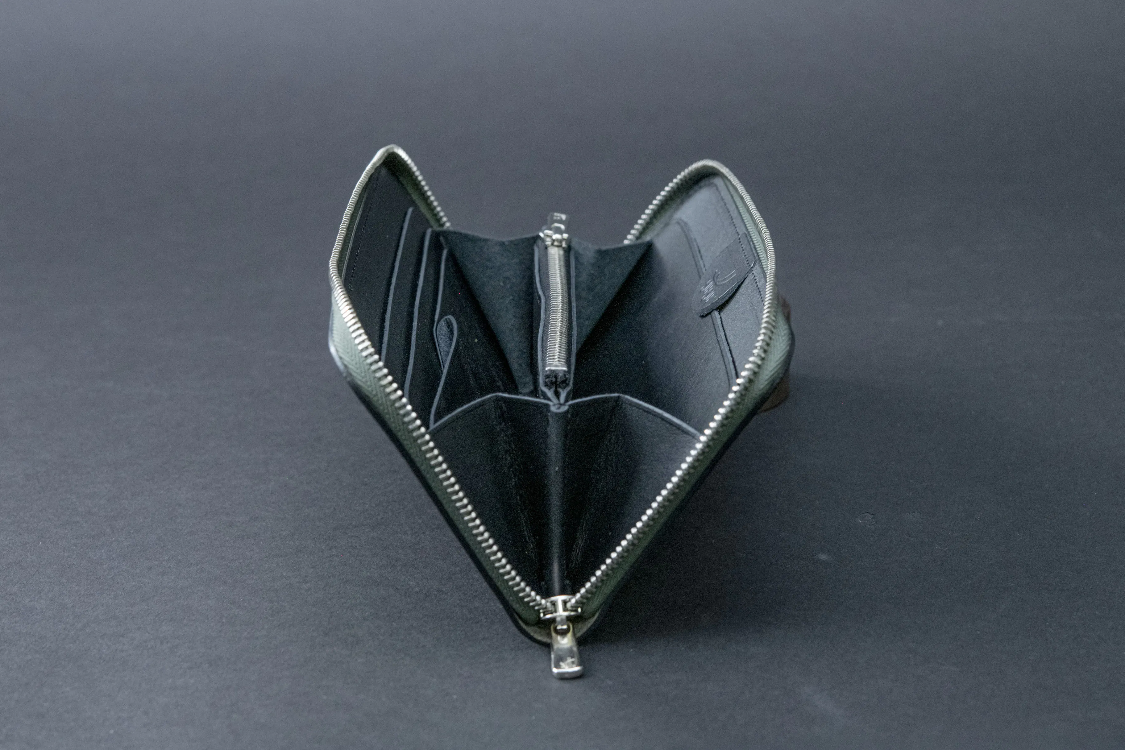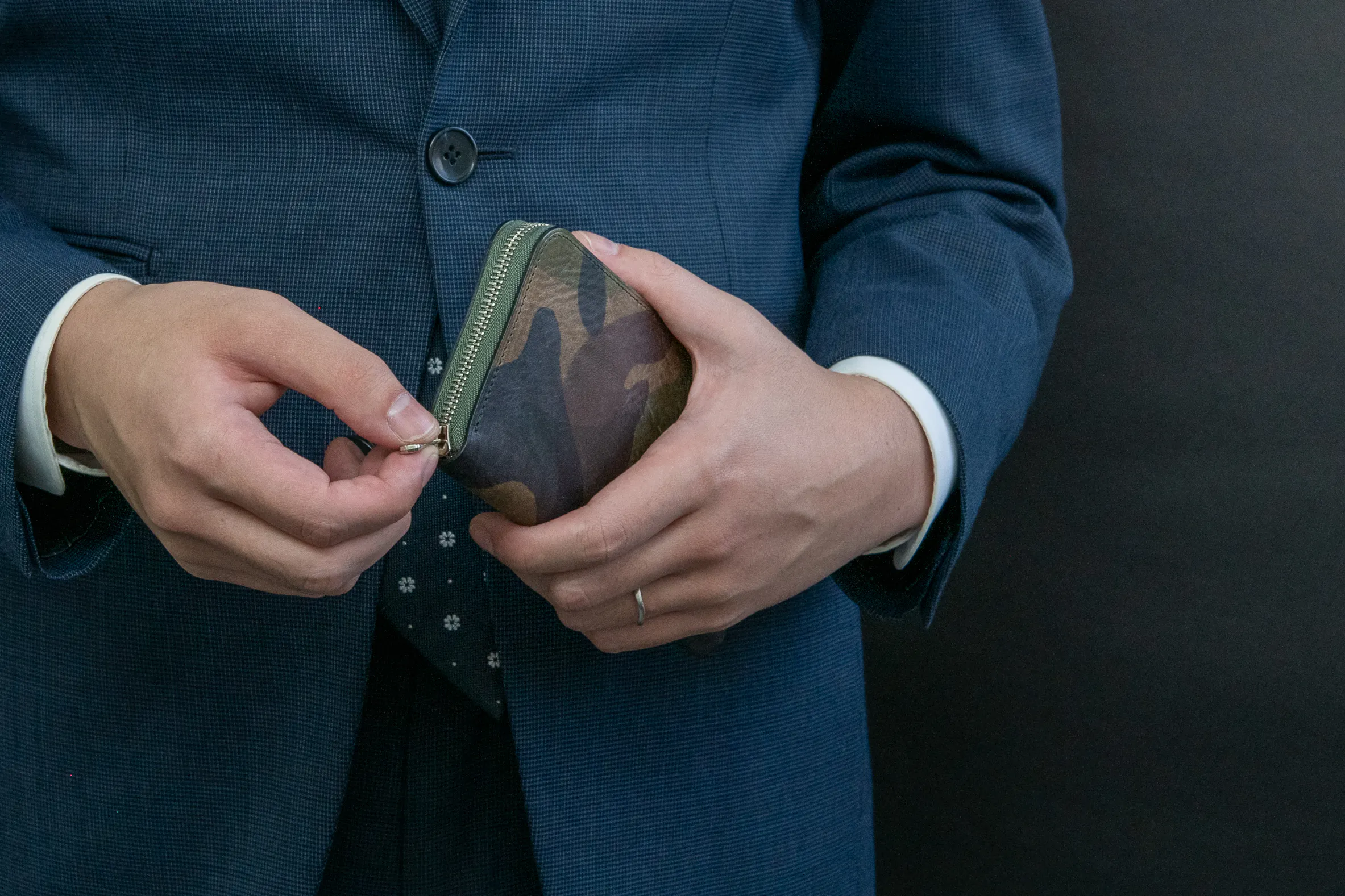 きっかけはお客様の声でした。「流行りに流されてコンパクト財布を買ってみたものの、今まで使っていた長財布に比べて、お会計の時にモタモタしてしまうし、あまり実用的ではなく、使いづらいんです。」私も長年、長財布愛好家としてラウンドジップの長財布を使っていました。コンパクト財布に移行してみたものの、長財布に比べて使いづらく、どうしたものかな~と考えておりました。考えて考えて考えていれば、「ハッ!!」と気づきました。自分が財布職人であるということに。笑それと同時に「ないなら作ればいいんだという事に。」そしてようやく答えにたどり着きました。