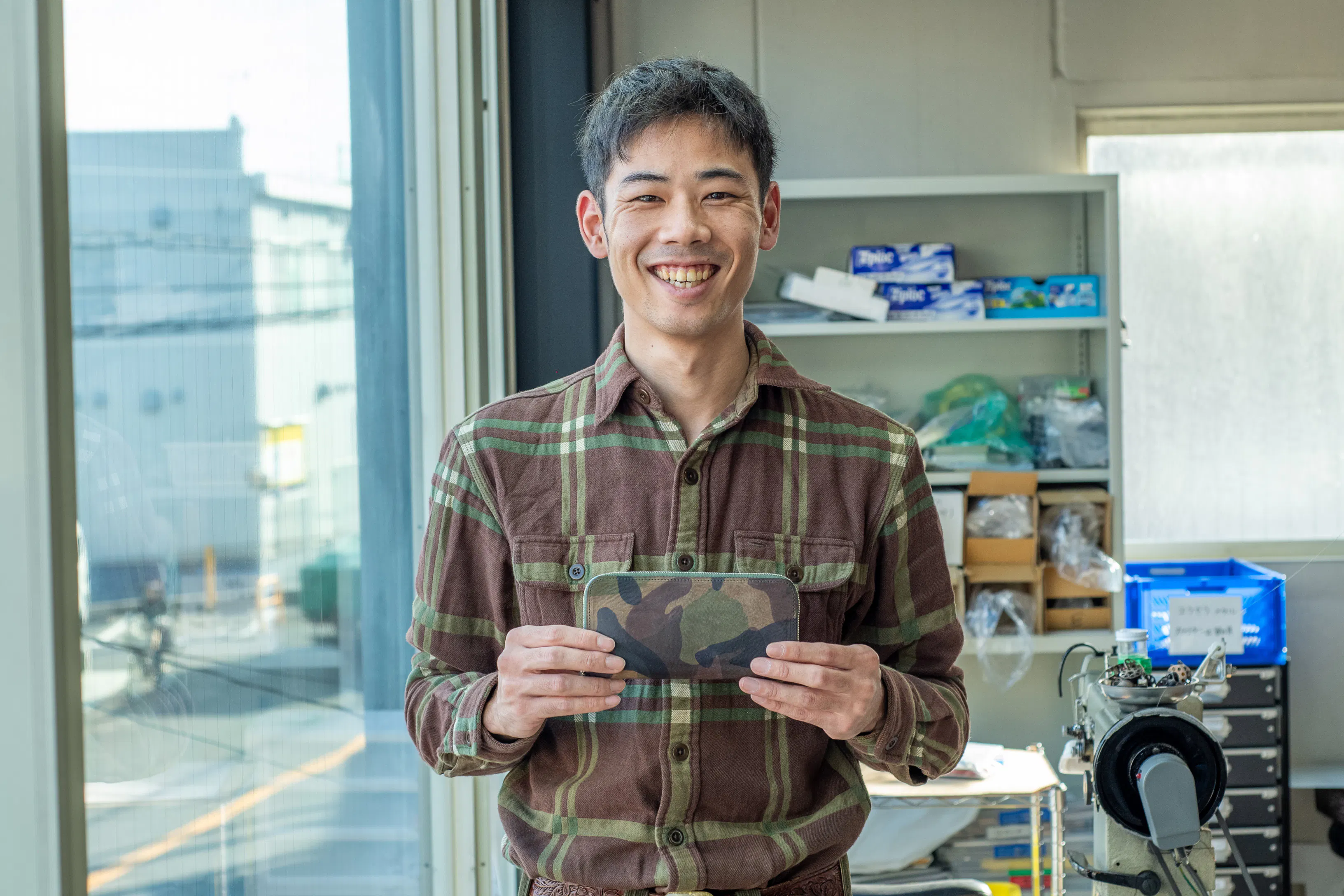 「商品は職人一同、力を合わせて製作しています。皆様に喜んでいただける商品をお届けできるよう、僕が責任をもって、頑張ります。」(職人 チアキ)