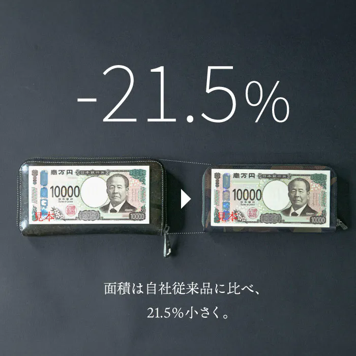 試行錯誤を重ね、1万円札がピッタリ入るサイズに小さくすることに成功しました。
