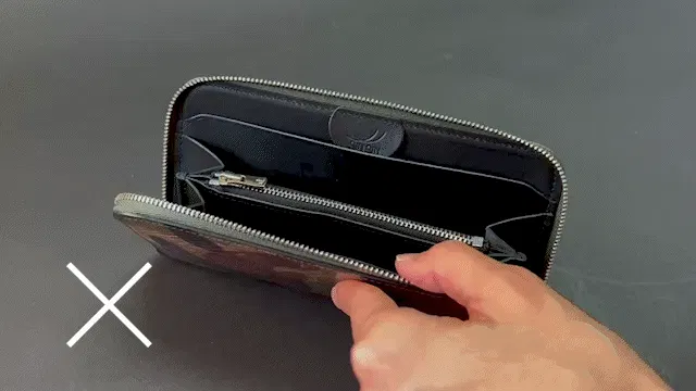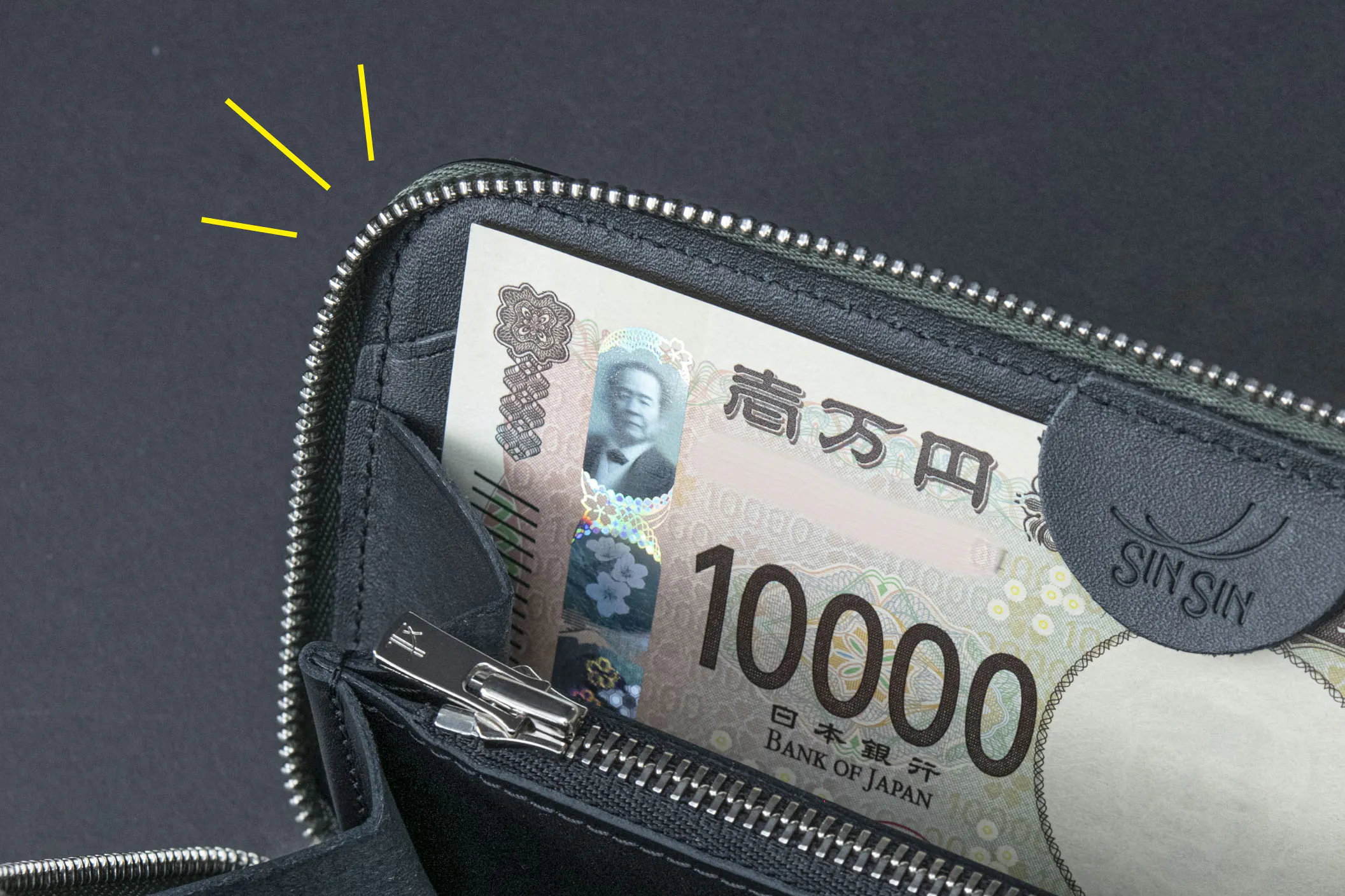 お札ストッパーを付けることで、ファスナーにお札が挟まることを防ぎます。
