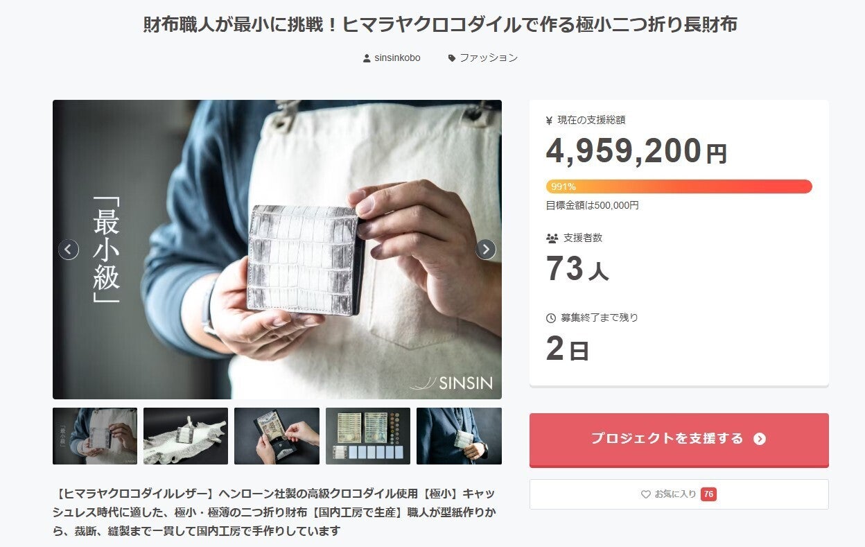 ついに【極小二つ折り財布 クッペ】のプロジェクトも残り2日となりました!