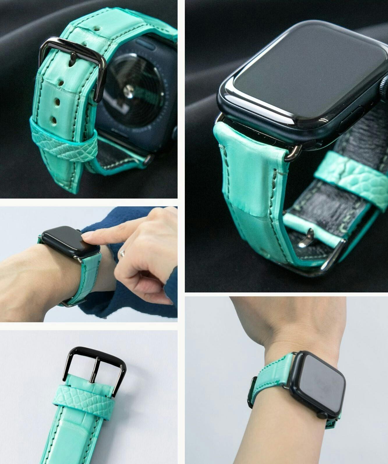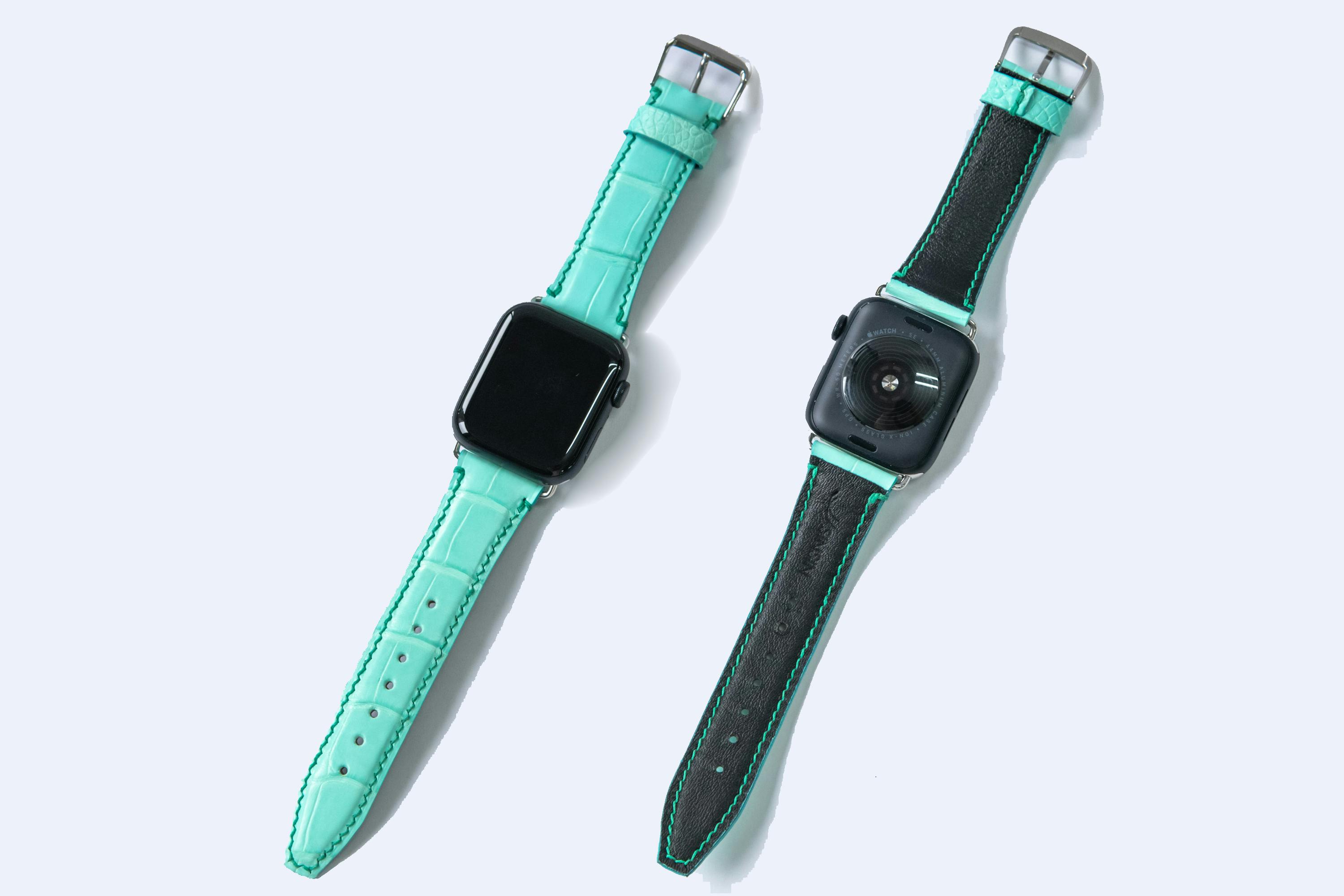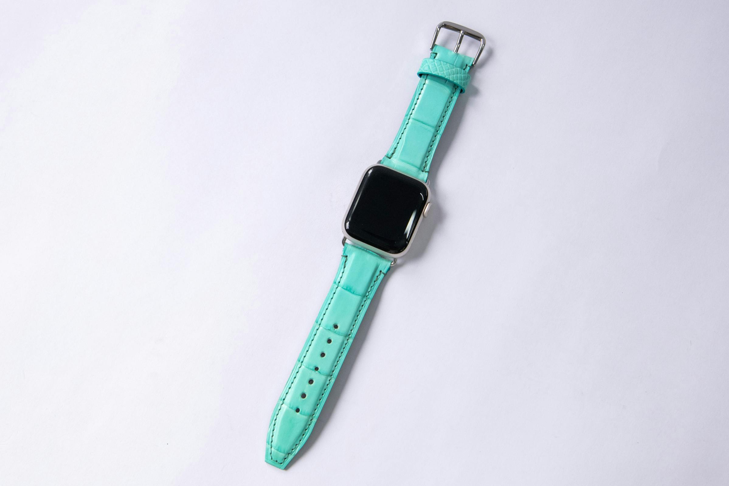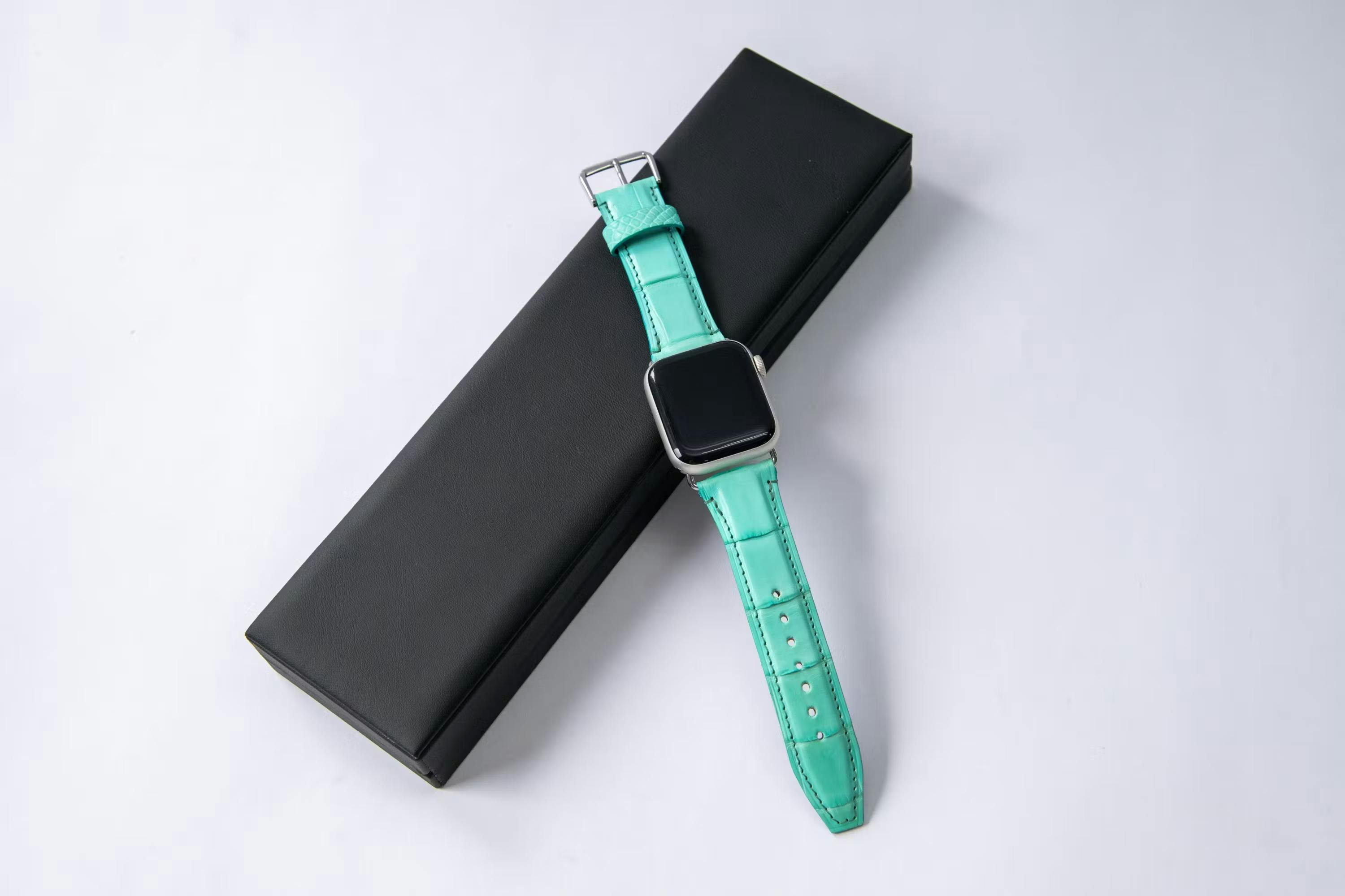 そんなあなたのために、モエ・ヘネシー・ルイ・ヴィトン社の傘下であるヘンローン社から直接仕入れたシャイニークロコダイルレザーを使用して作った高級感のあるアップルウォッチバンドが完成しました!