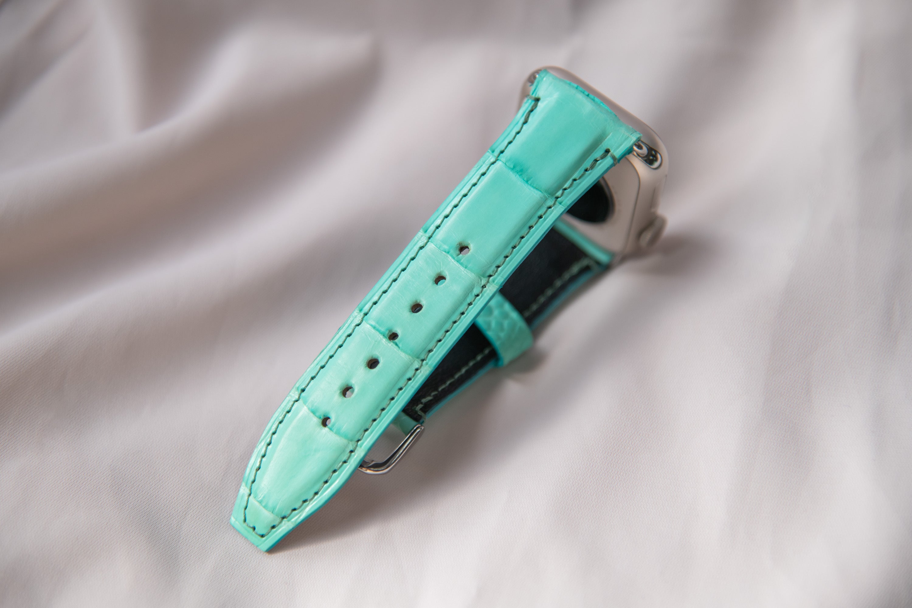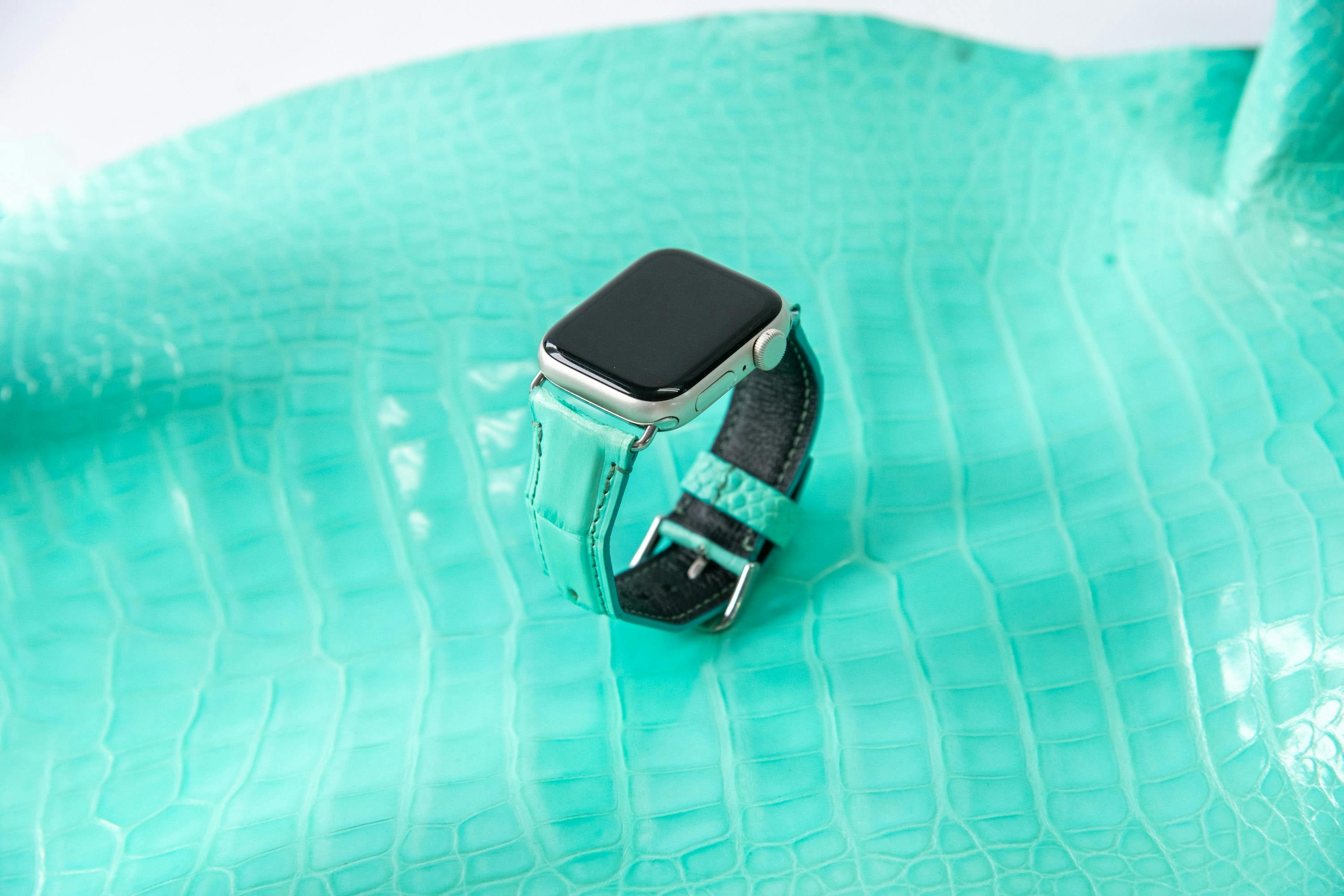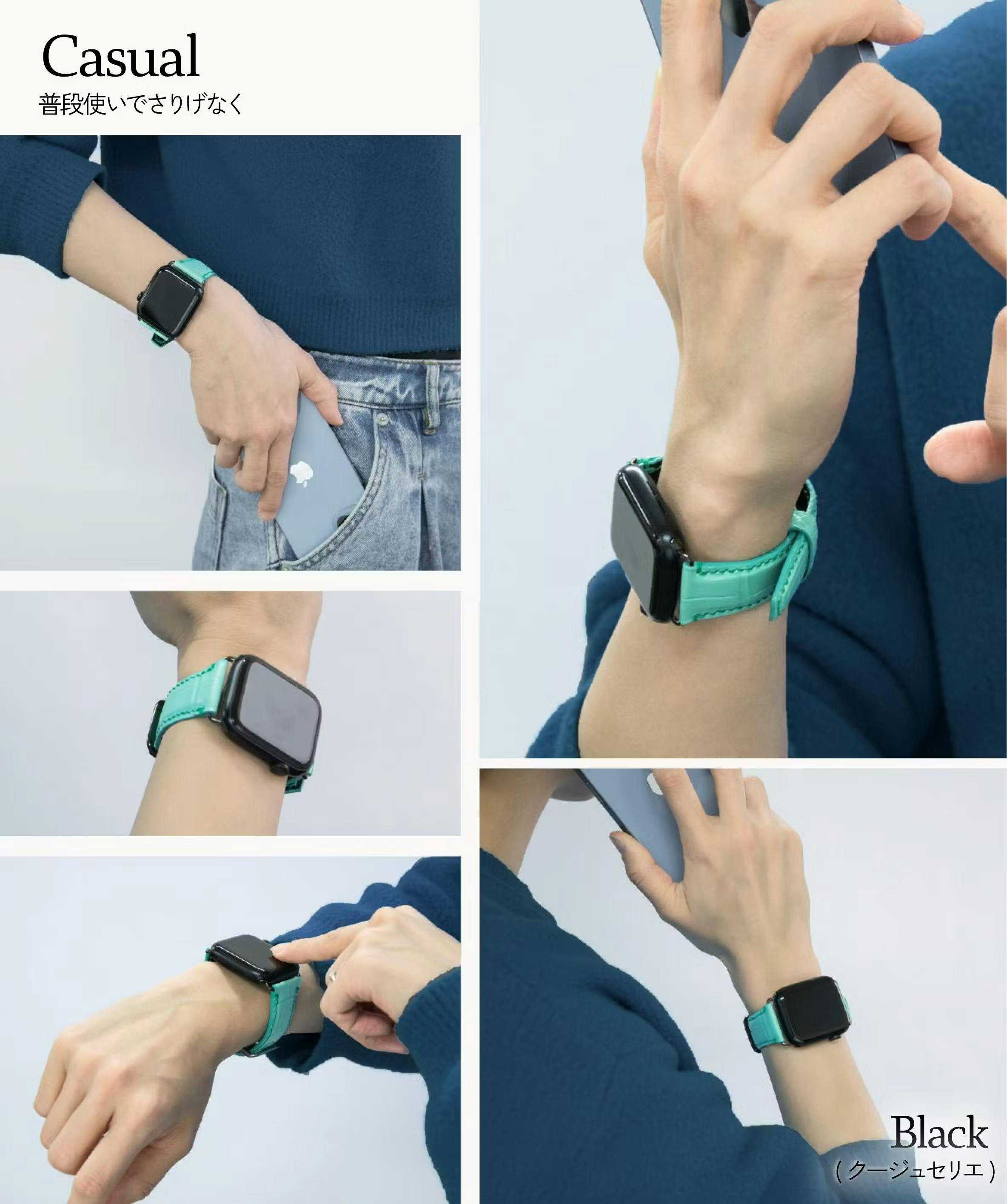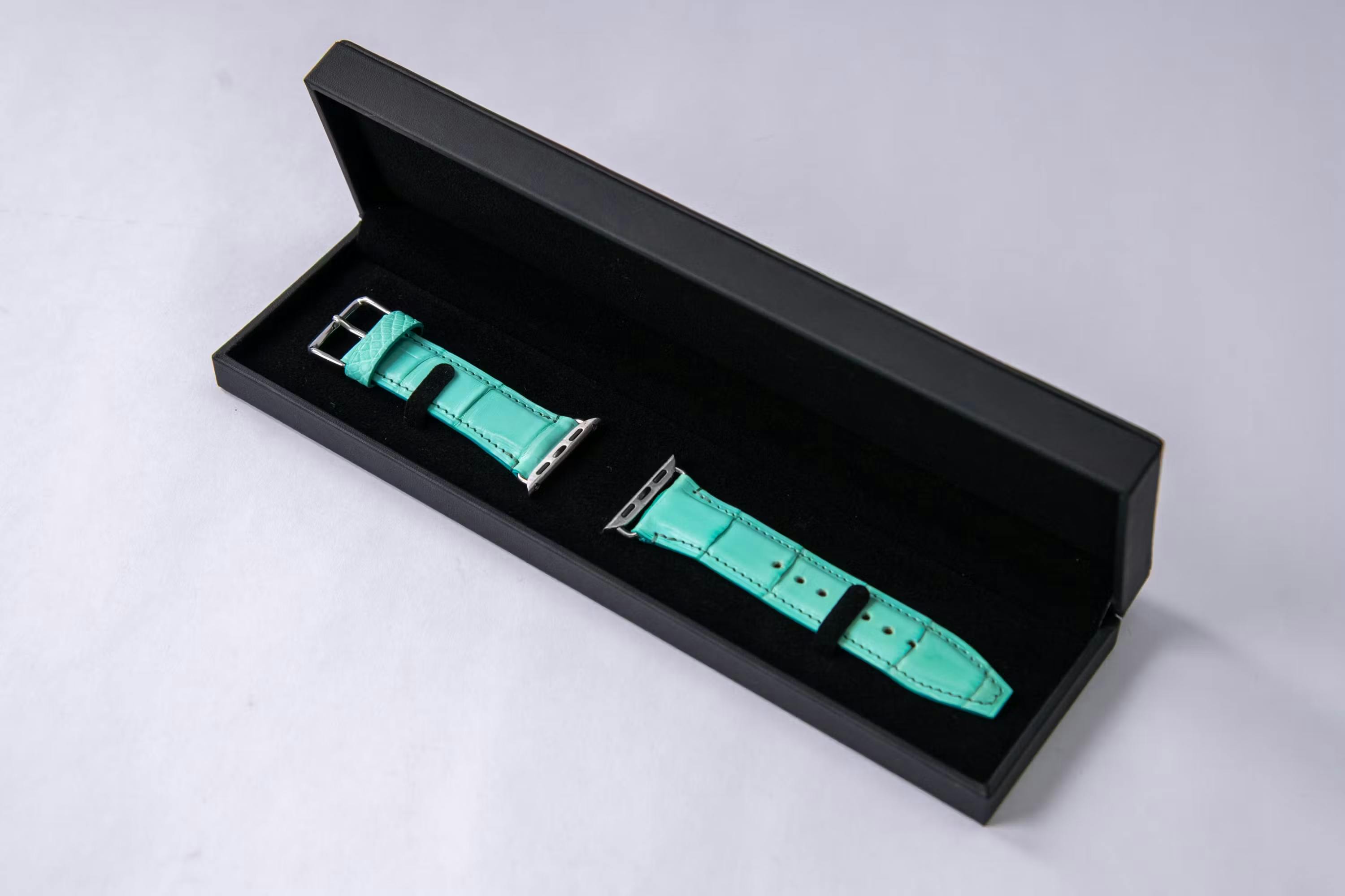 そんなあなたのために、モエ・ヘネシー・ルイ・ヴィトン社の傘下であるヘンローン社から直接仕入れたシャイニークロコダイルレザーを使用して作った高級感のあるアップルウォッチバンドが完成しました!