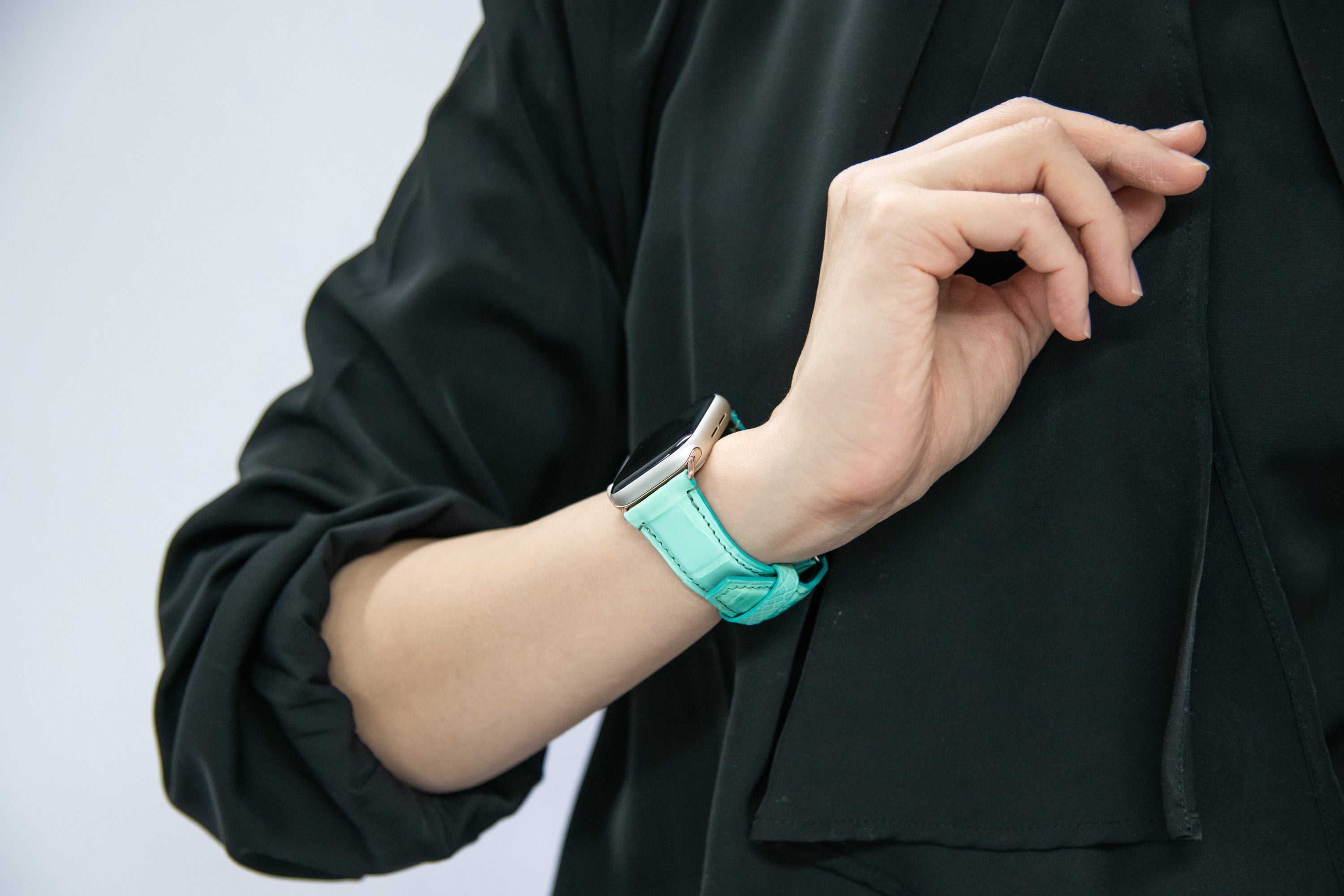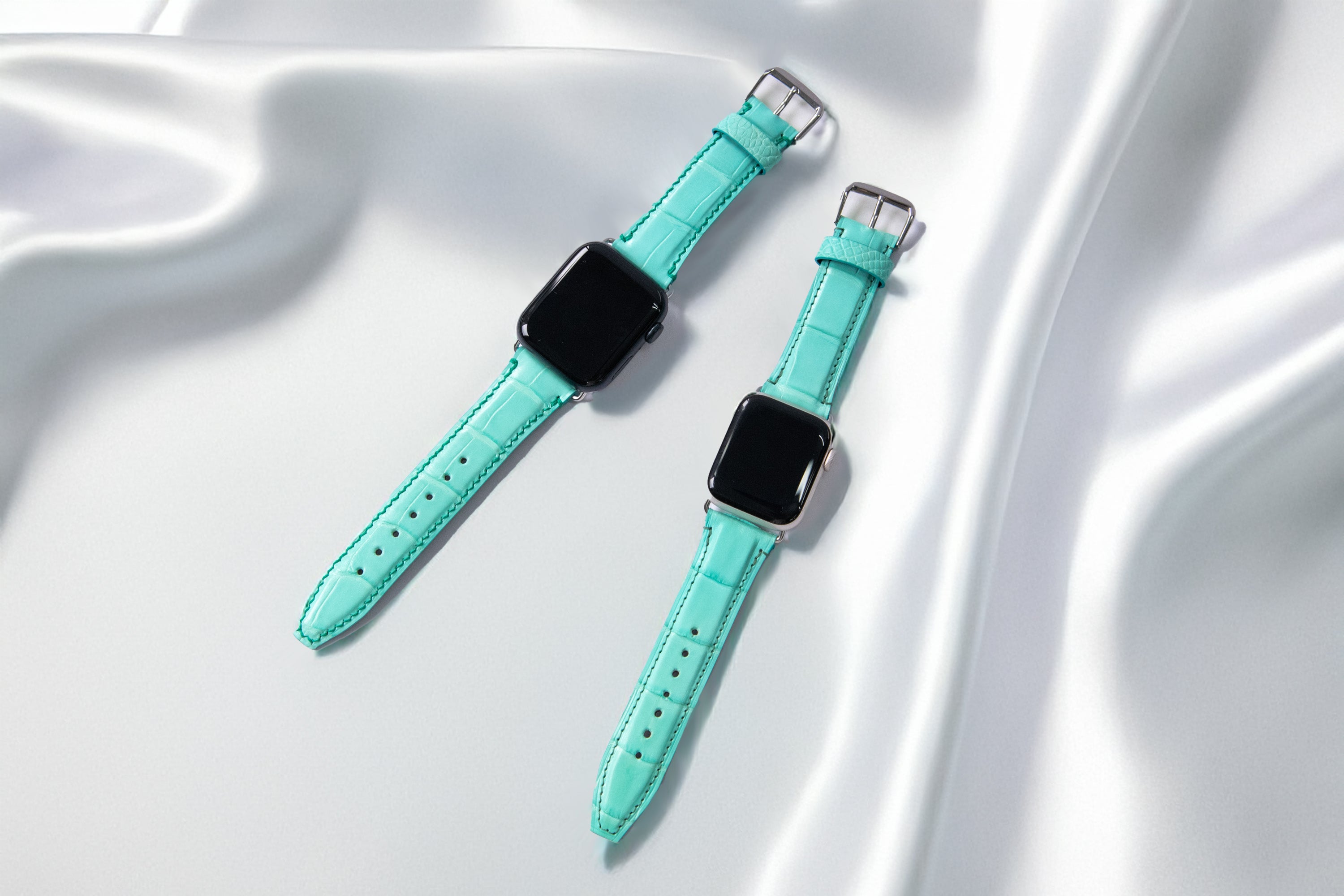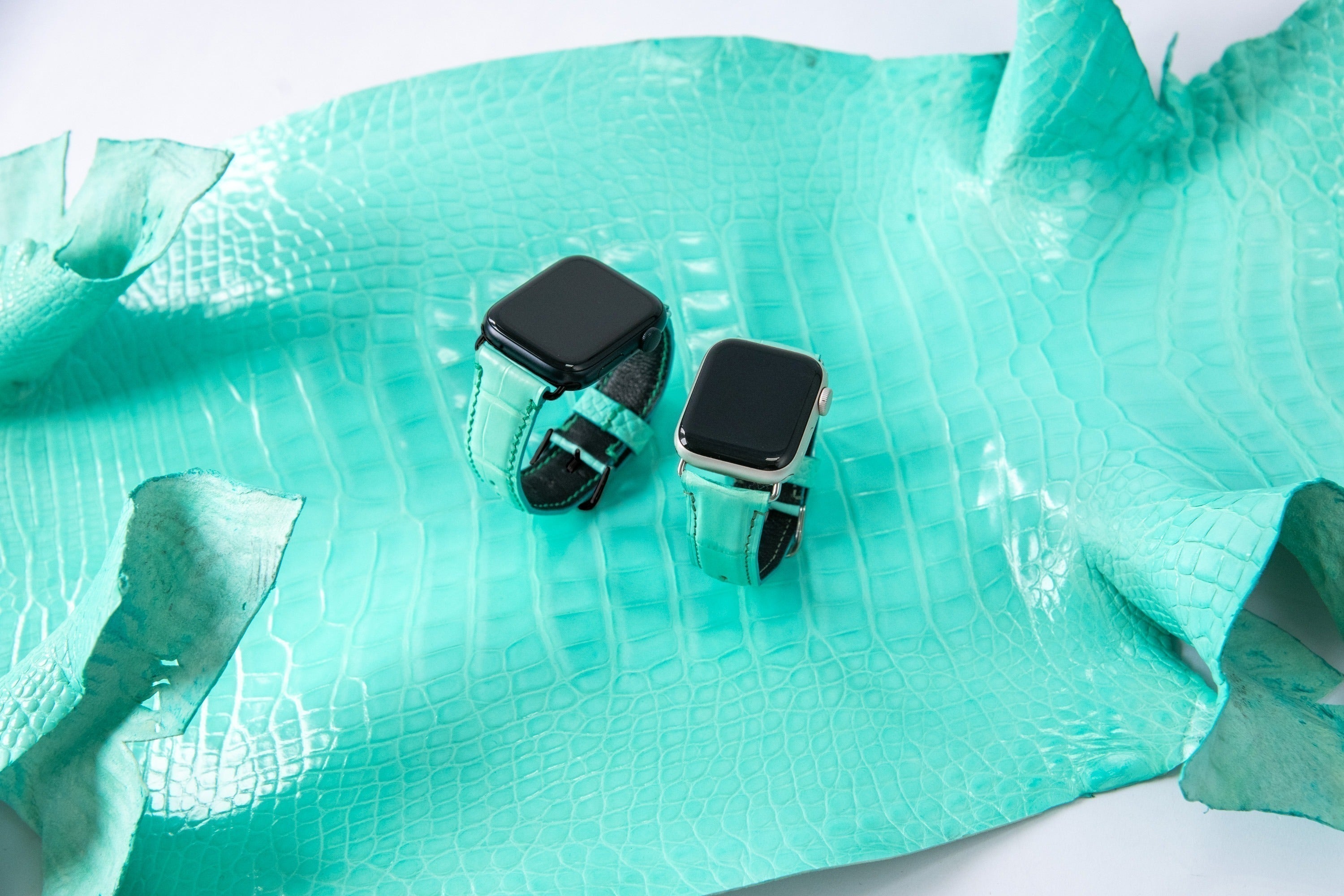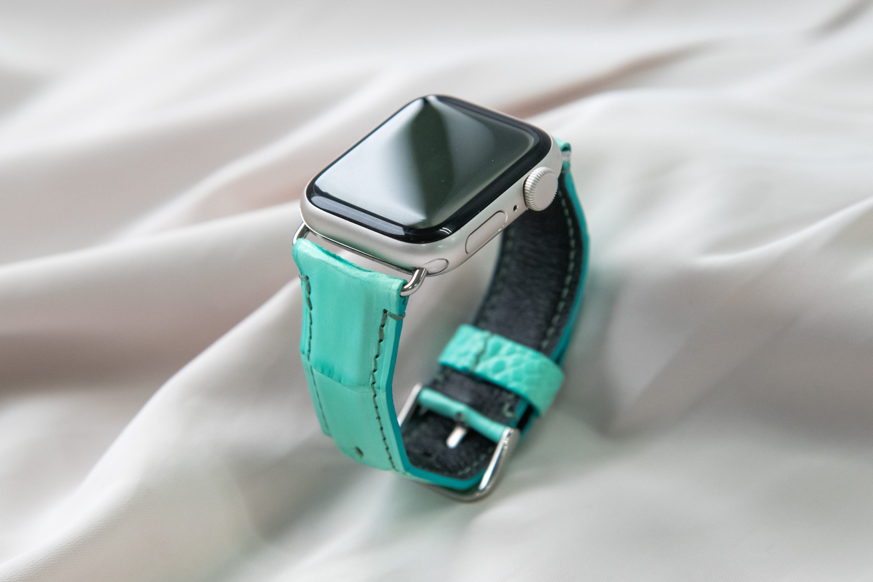 そんなあなたのために、モエ・ヘネシー・ルイ・ヴィトン社の傘下であるヘンローン社から直接仕入れたシャイニークロコダイルレザーを使用して作った高級感のあるアップルウォッチバンドが完成しました!