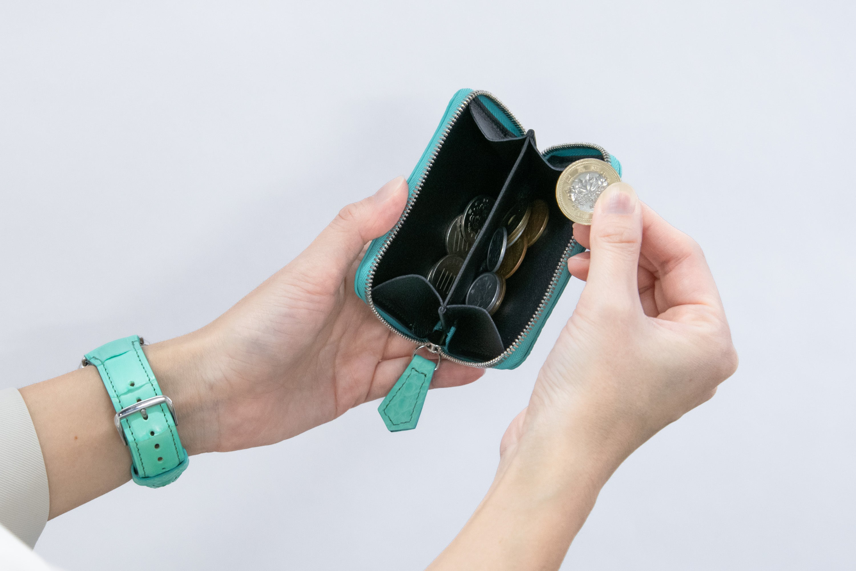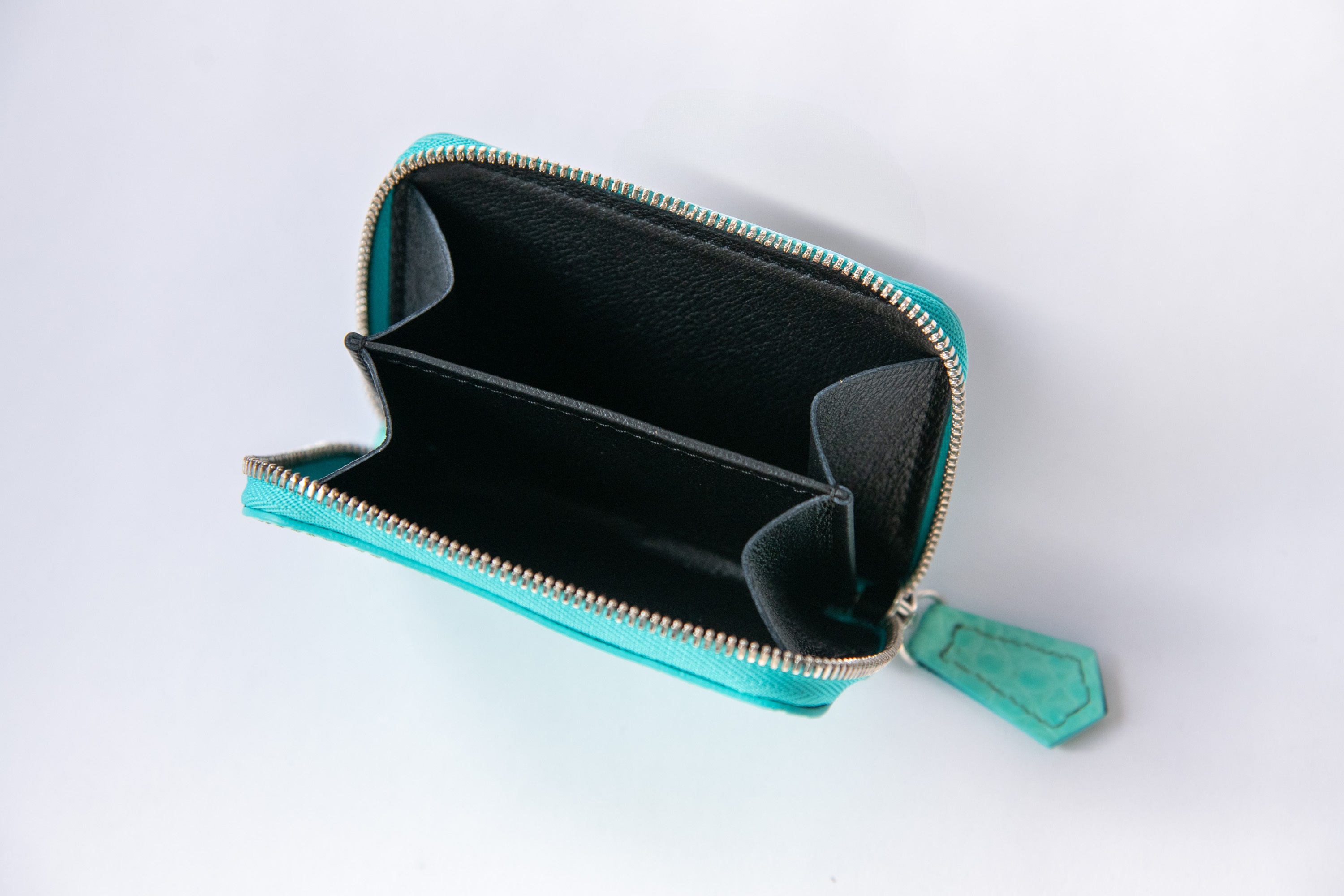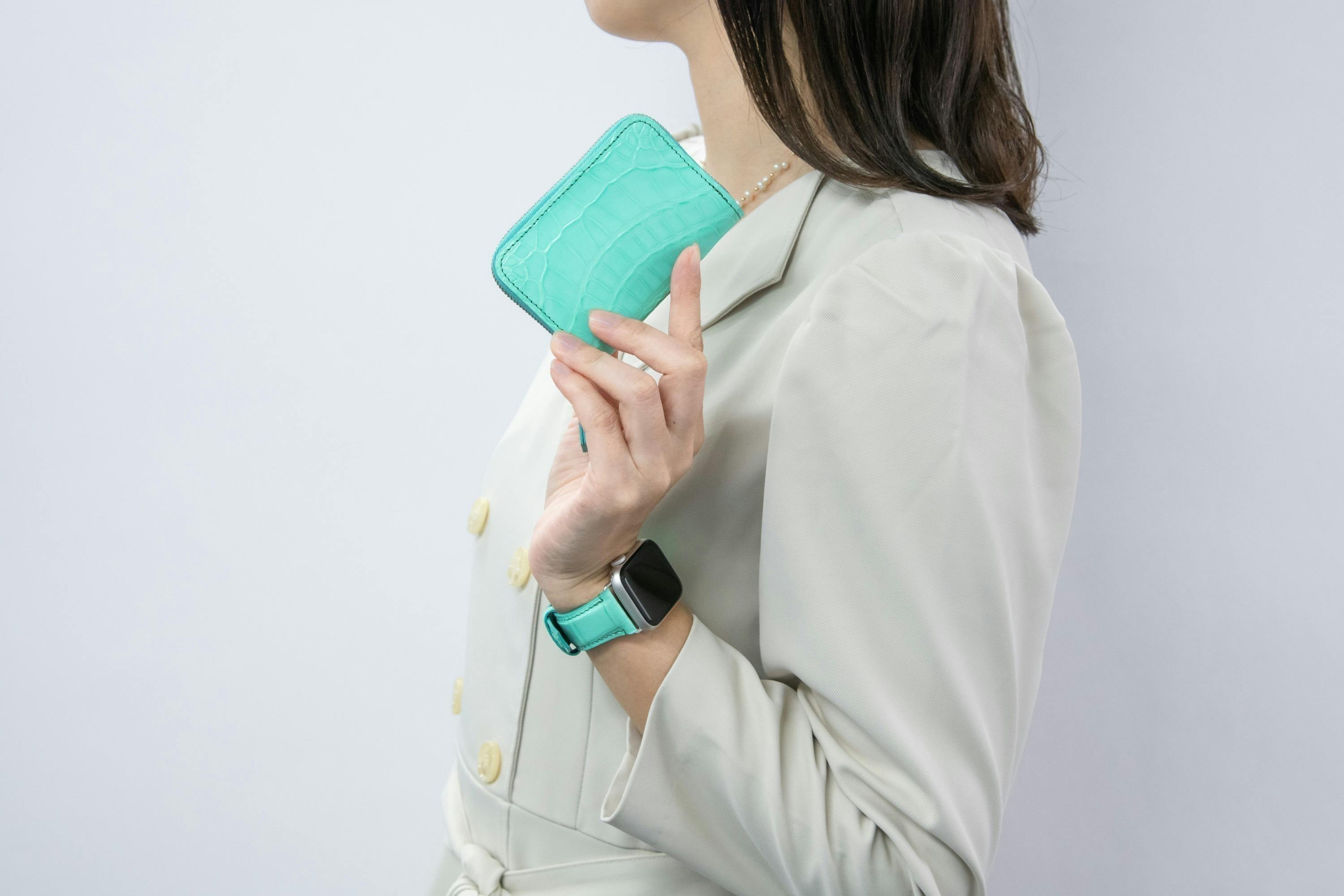 そんなシャイニークロコダイルを存分に楽しんでいただくため、同じ革で作ったコインケースもオプションでご用意しております。