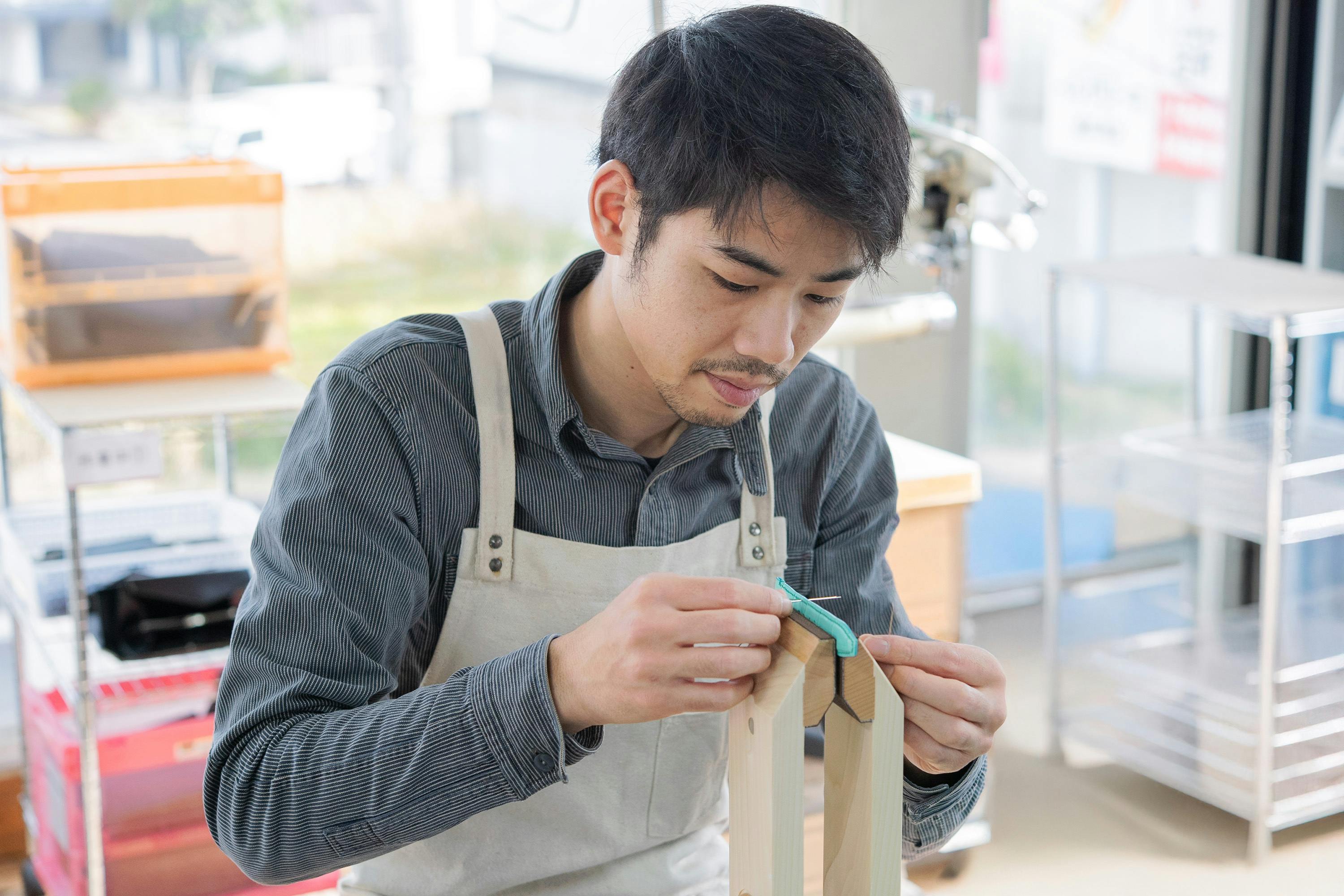「商品は職人一同、力を合わせて製作しています。皆様に喜んでいただける商品をお届けできるよう、僕が責任をもって、頑張ります。」(職人 チアキ)