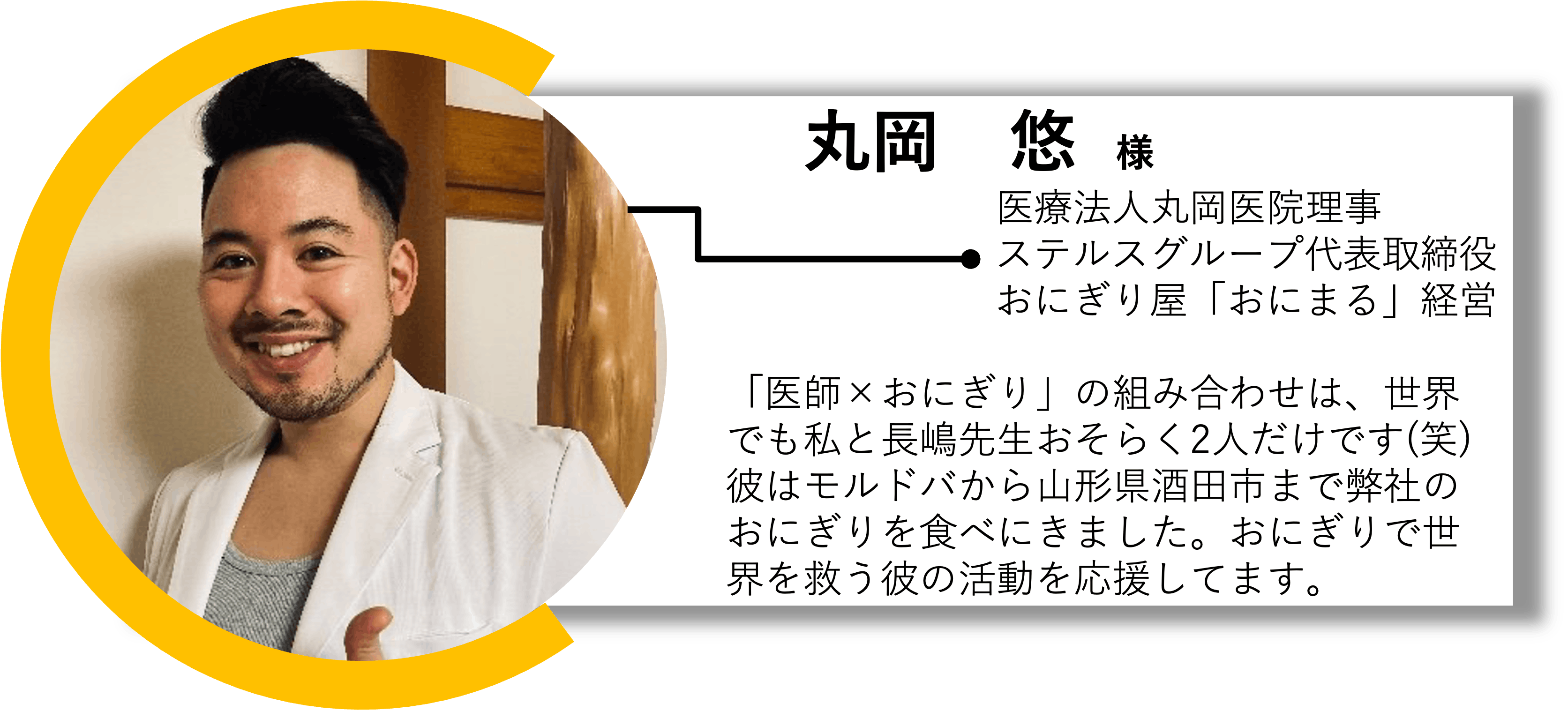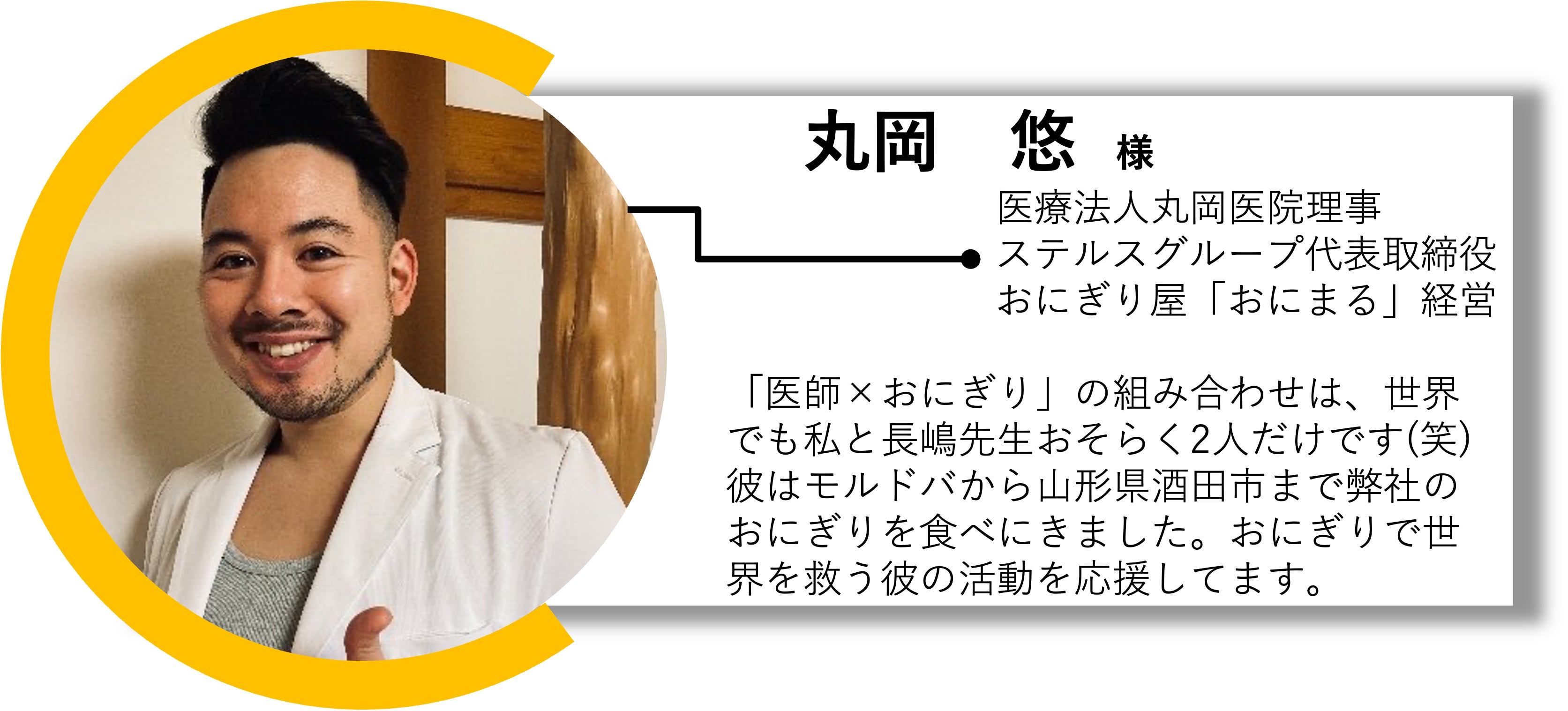 尊敬する丸岡悠先生の法人様からご支援いただいております。庄内地方から新しい医療の形を創ろうとしている心意気に共感してます。同グループのおにぎり屋「おにまる」もおすすめです!庄内にいった際にはぜひ訪れて見てください。