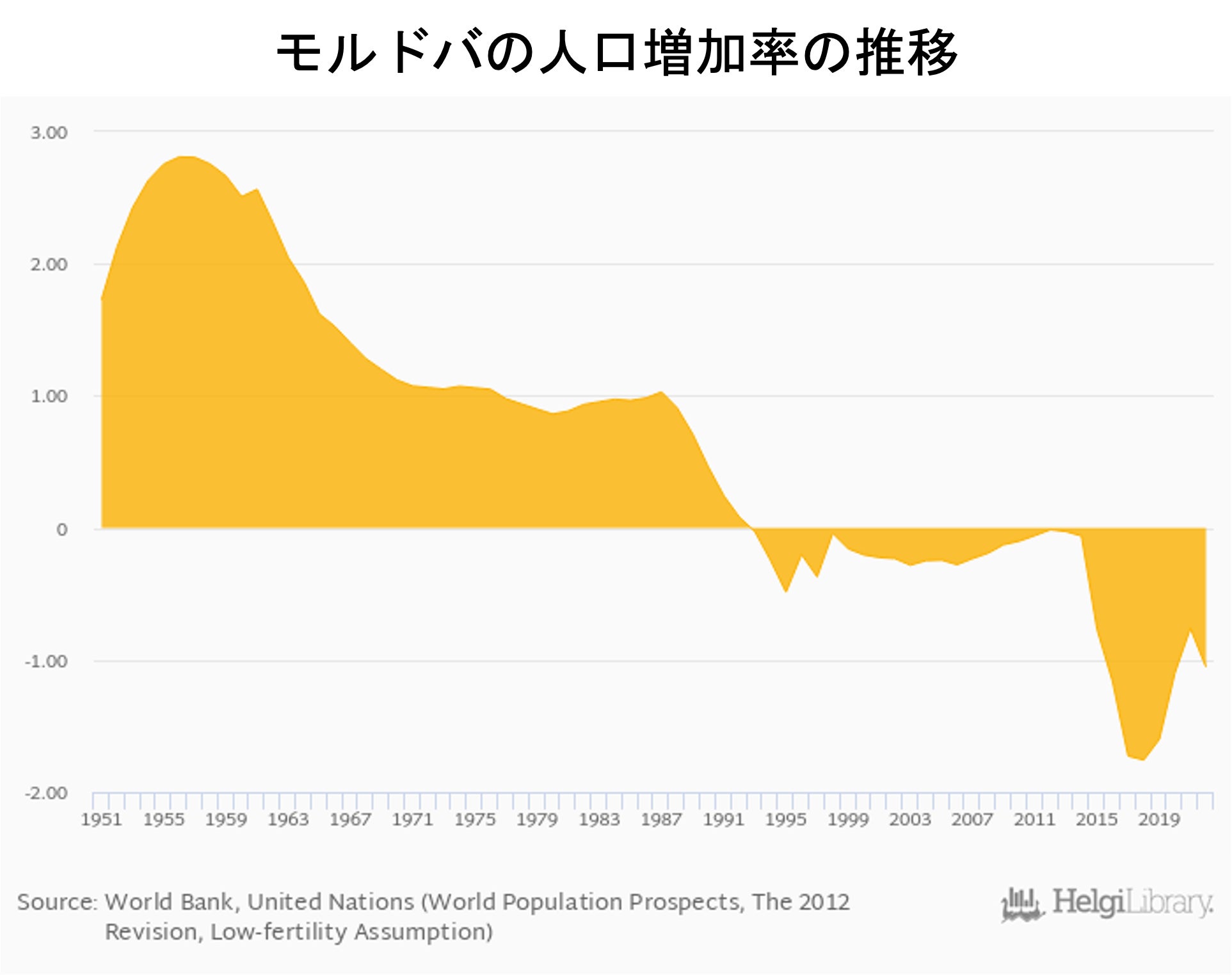 モルドバの大きな問題として人口減少があります。1993年からこれまで人口が減り続けてきました。その原因の1つが働き口がないことです。若者は進学や就職のタイミングでモルドバを離れて、西ヨーロッパに移住してしまいます。
