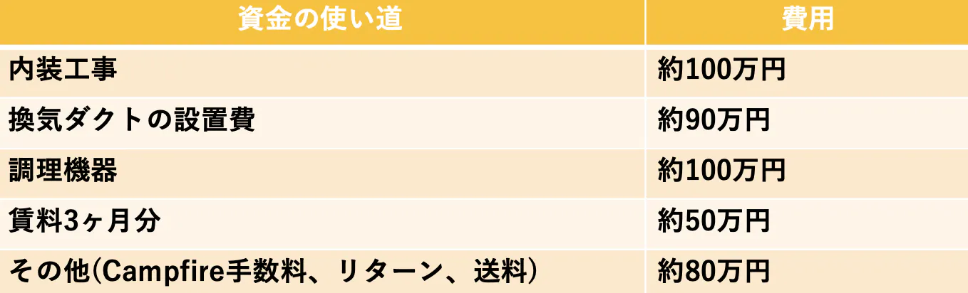 第1目標として200万円(内装工事費、賃料、その他経費)です。