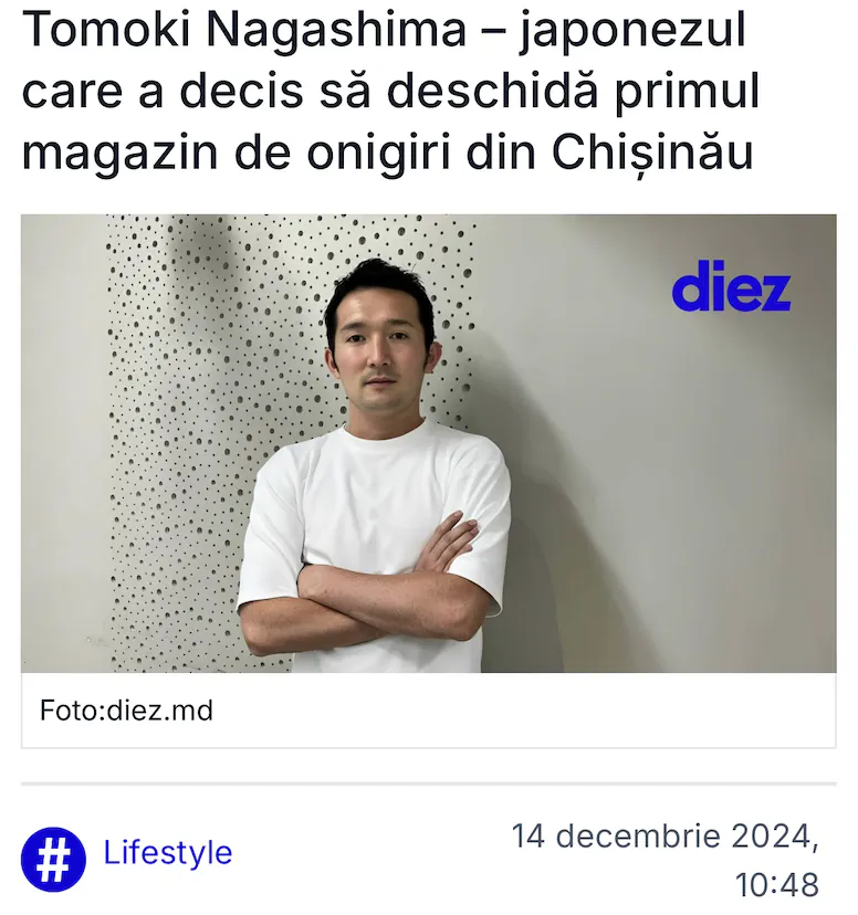 「おにぎりは現在、フランスやドイツ、イギリスで人気が高まっており、中央ヨーロッパにも広がっています。ポーランドには5店舗、ウクライナにも1~2店舗ありますが、モルドバにはまだ一つもありません。数年後には必ず人気になると確信しており、その先駆者になりたいと考えています。」(本人談)お店はキシナウ中心部Phin Tokyo Plaza(ミトロポリト・ガブリエル・バヌレスク=ボドーニ通り57番地)に2025年初頭のオープンを予定。テイクアウト中心の小さなキオスク形式ですが、座席も数席用意し、需要に応じて店舗の拡張も視野に入れています。おにぎり店の開業前、友希さんは地元のフェスティバルで日本文化を紹介する活動を行いました。特に2024年にはキシナウで開催された「GoCon」など、アニメやK-POPをテーマにしたイベントにも参加しています。
