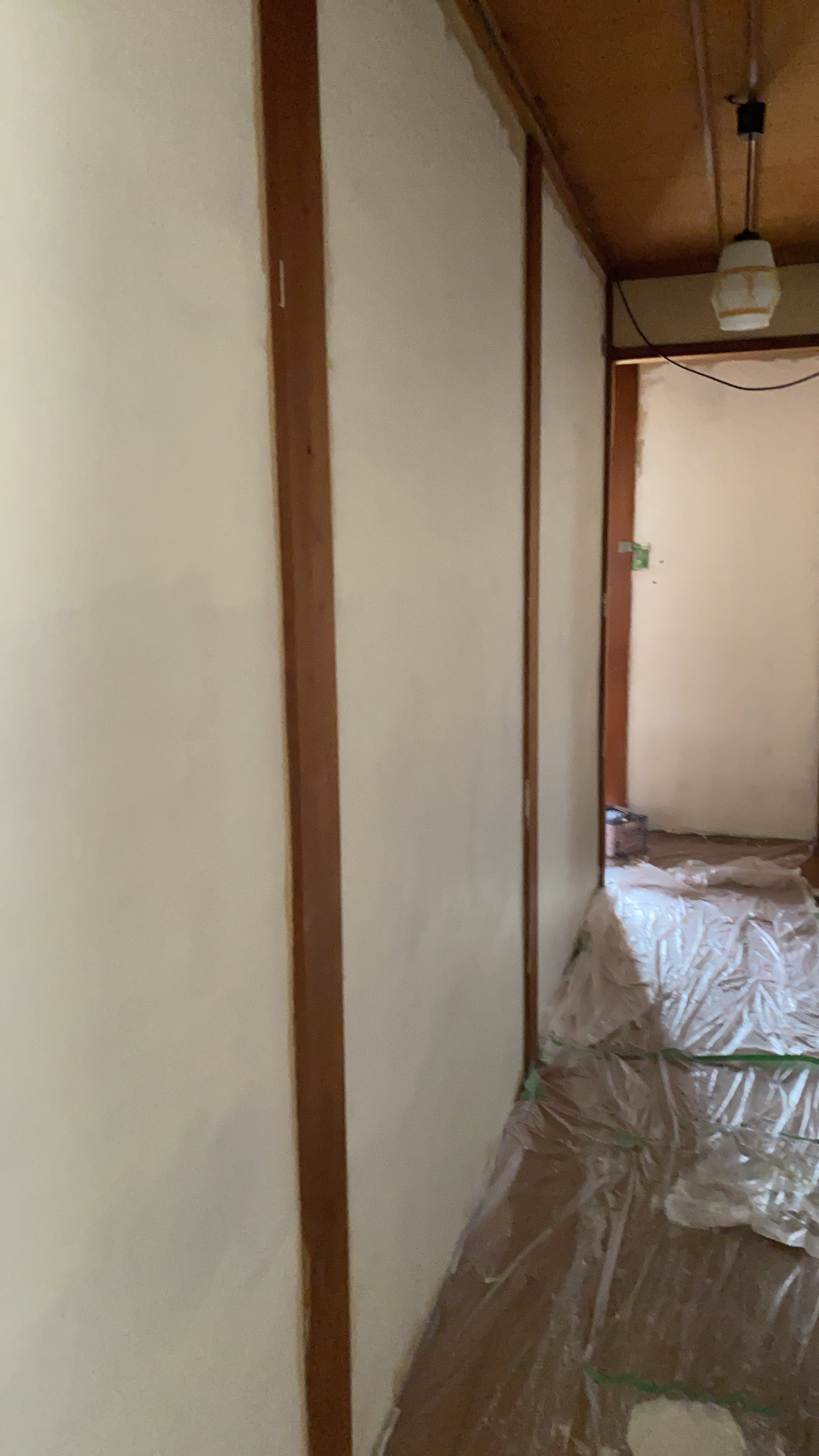 心友が大阪から壁を塗りに来てくれて、塗り残しの端っこをハケで塗り塗りそして、調子づいて玄関塗りかけたけど、壁塗りは養生テープ8割りで決まると言われる大事な大事なテープがなくなってしまい断念(泣)次は水曜日かな。