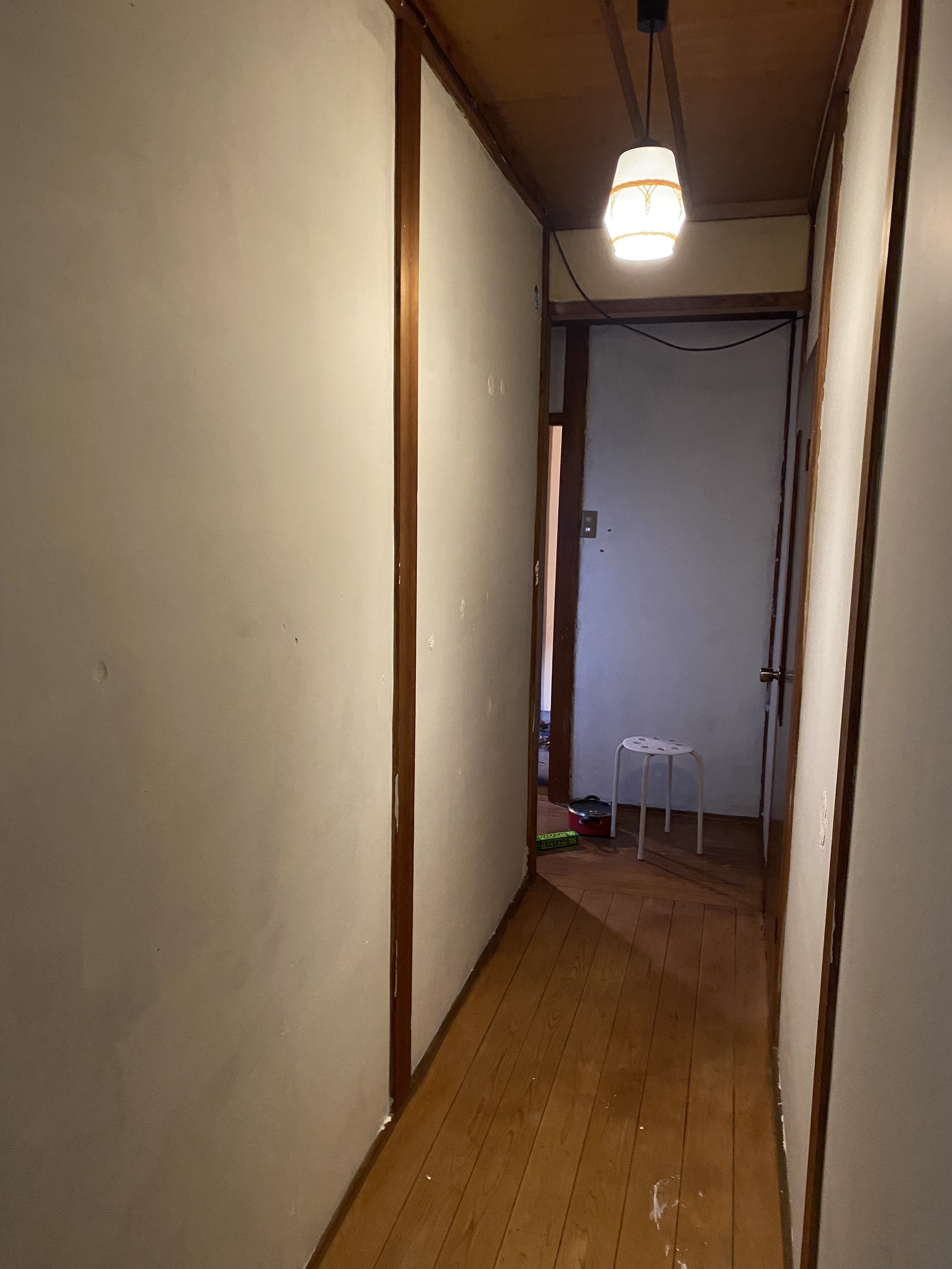 そして、調子づいて玄関塗りかけたけど、壁塗りは養生テープ8割りで決まると言われる大事な大事なテープがなくなってしまい断念(泣)