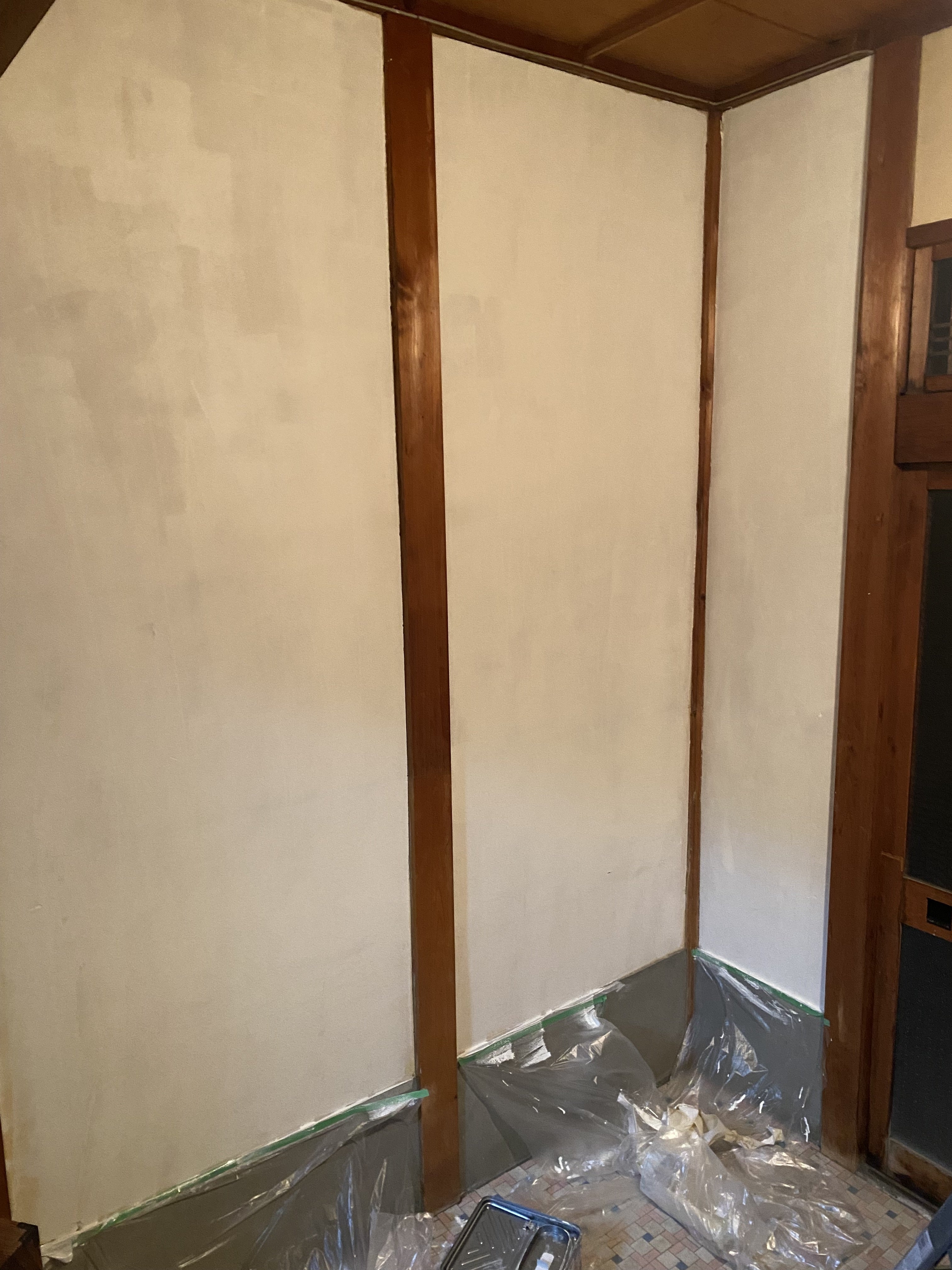 心友が大阪から壁を塗りに来てくれて、塗り残しの端っこをハケで塗り塗り