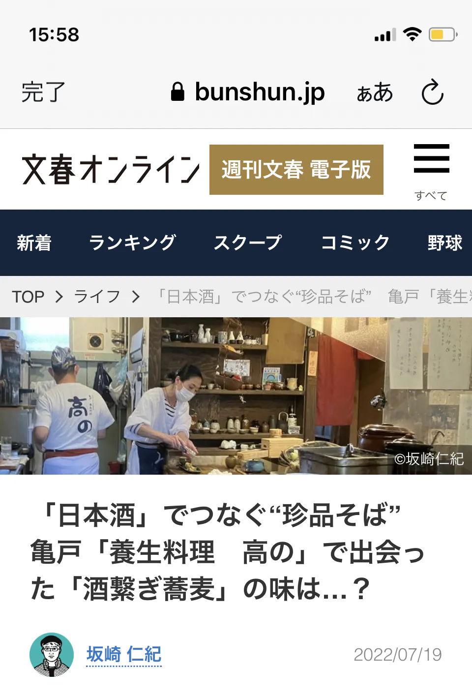 文春オンラインに2度掲載していただきました。