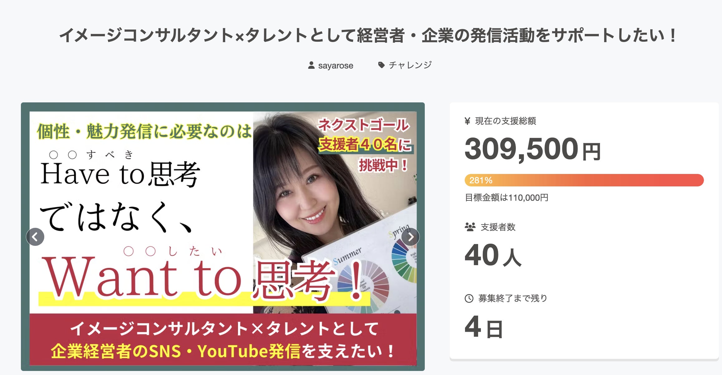 イメコン・タレントのサービスを届けたい想いがあるので、最終ネクストゴール【支援者50名様】に挑戦させていただきます!