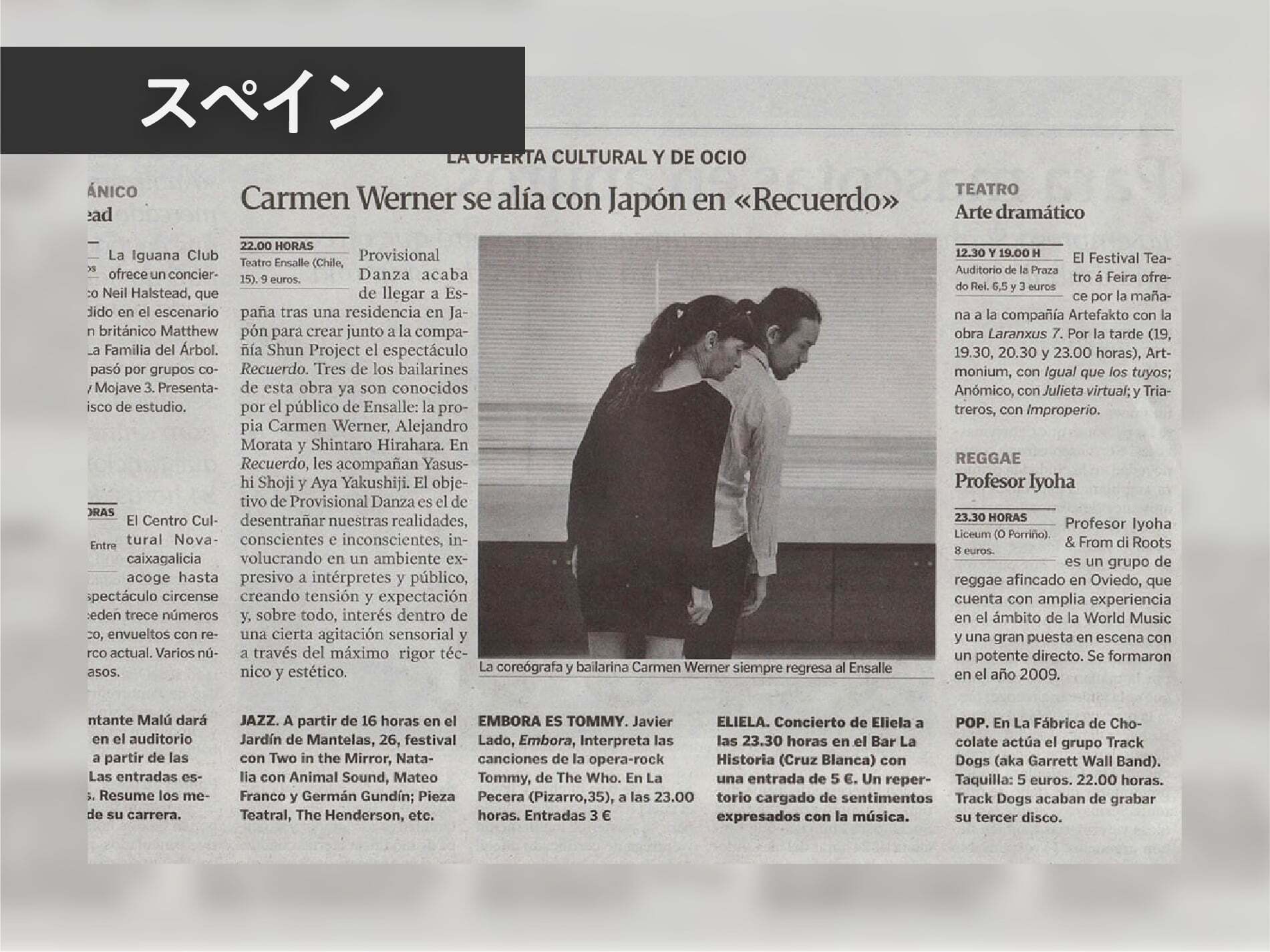 ◆2002年からスペインを代表する振付家のひとりであるカルメン・ワーナーと交流を深め、以降毎年のようにスペインと日本で作品を上演。今となっては20年以上の付き合いに。
