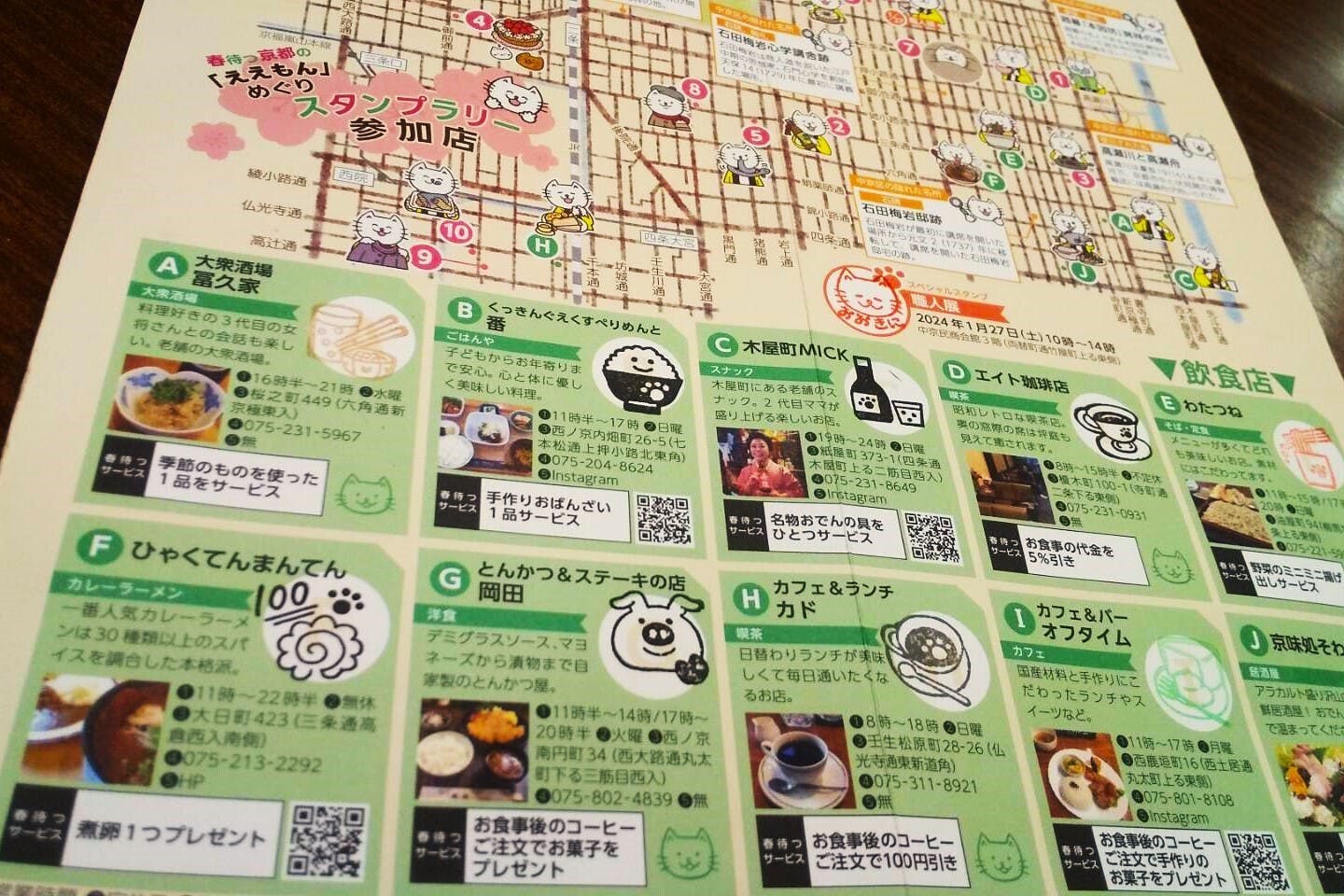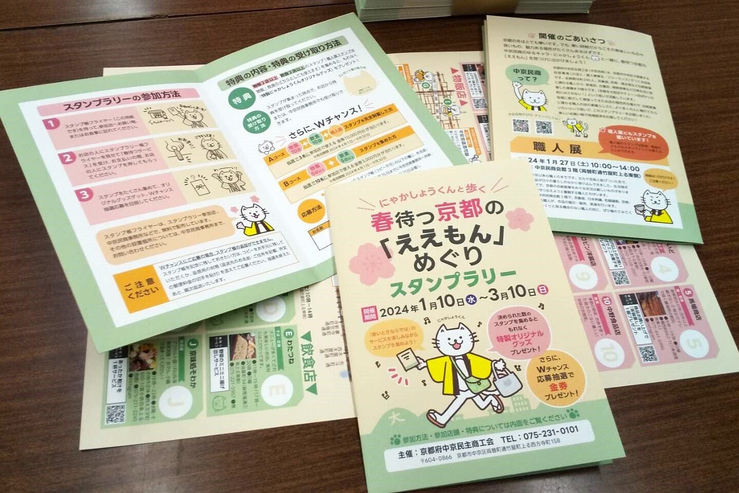 2024年1月から3月にかけて、京都市中京区の個性豊かなお店をめぐりながらスタンプを集める「にゃかしょうくんと歩く 春待つ京都の『ええもん』めぐりスタンプラリー」を初めて開催しました。スタンプ帳の制作費を集めるためのクラファンでご支援いただいたみなさま、ありがとうございました。おかげさまで多くの方にご参加いただき、地域密着で頑張るお店の魅力を再発見していただく機会になりました!