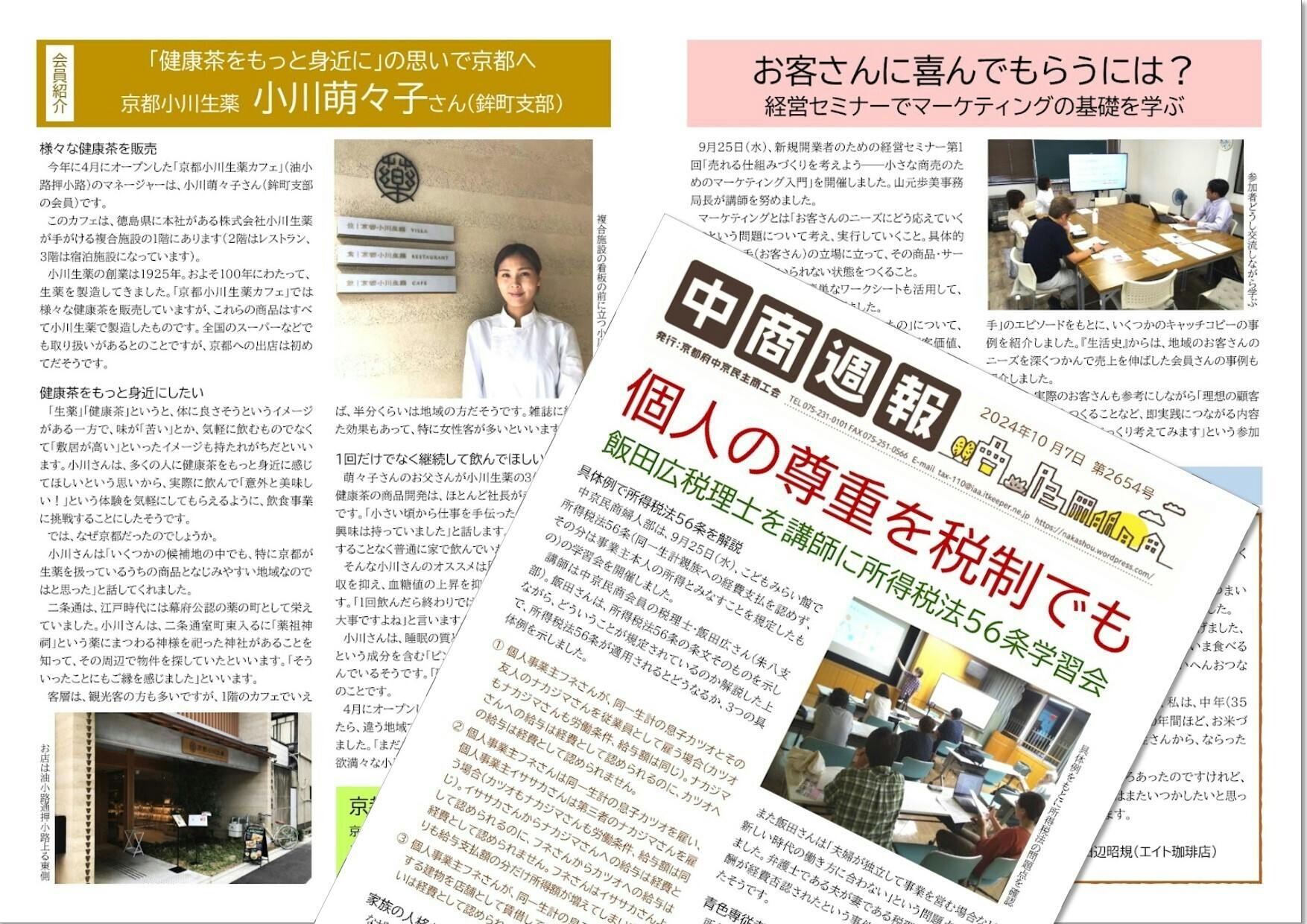 ※2023年の「京都・滋賀 機関紙・誌コンクール」で最優秀賞を受賞。毎月1回の会員紹介コーナー、毎週の会員コラム「商売よもやま話」が大人気!