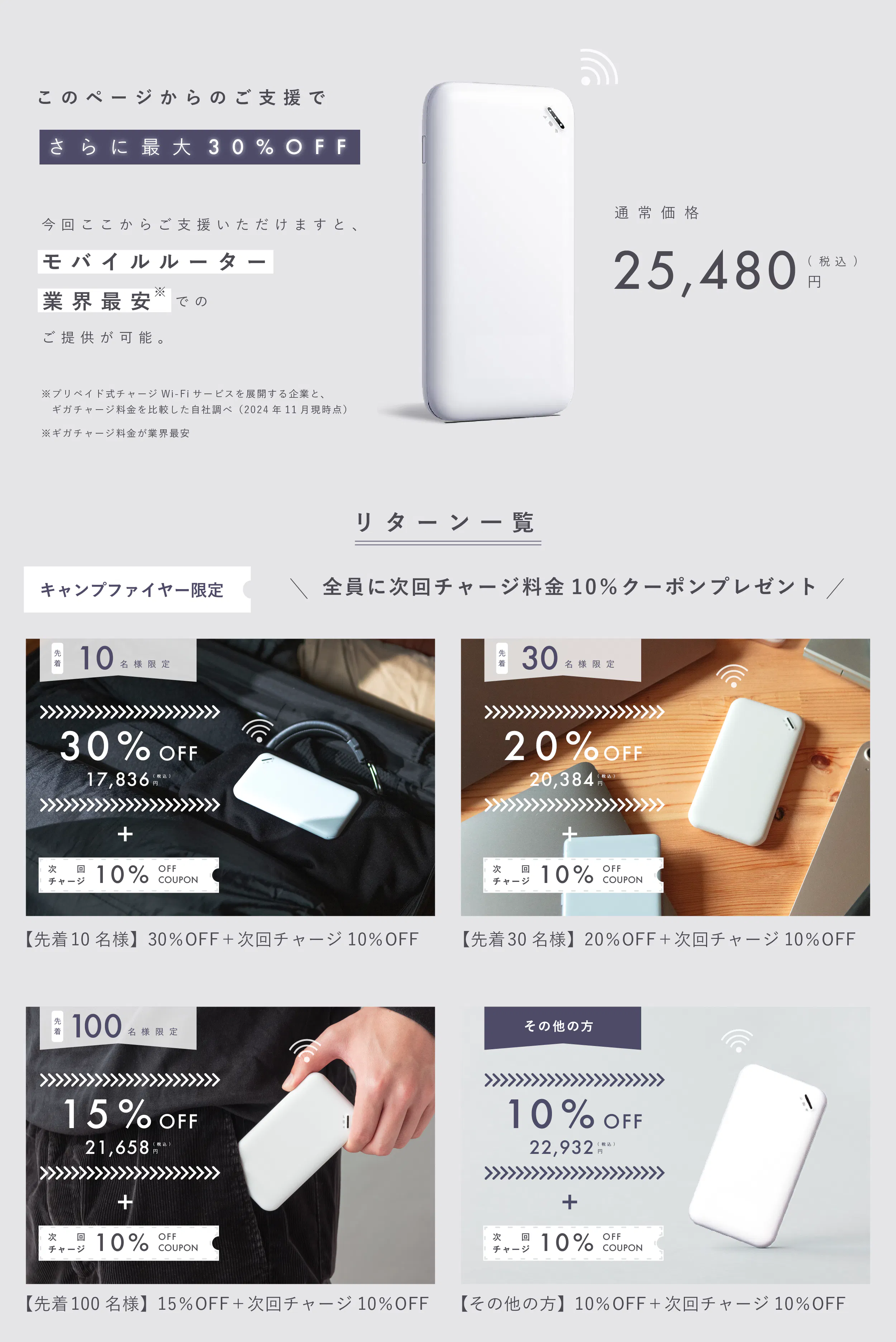 もっと見る【前回ご支援くださった皆さまへ】 新モデル〈サクッとWi-Fi light〉先行予約スタート&“リピーター限定”クーポンのご案内