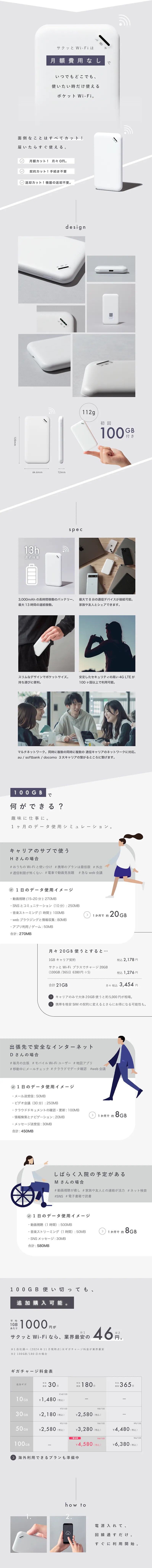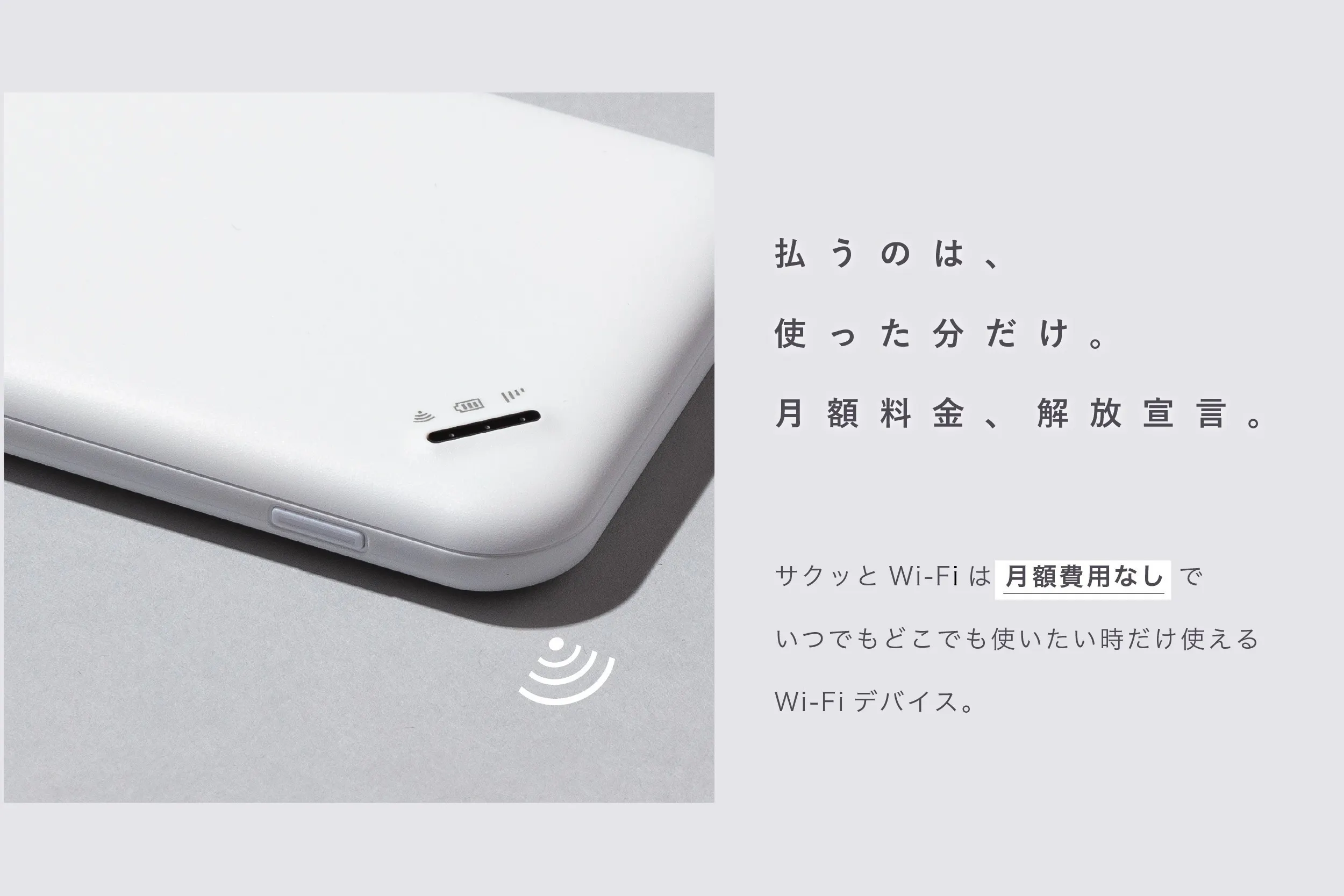 サクッとWi-Fiは、長期契約不要で使用量に応じて必要な分だけ通信データを購入できるサービスです。