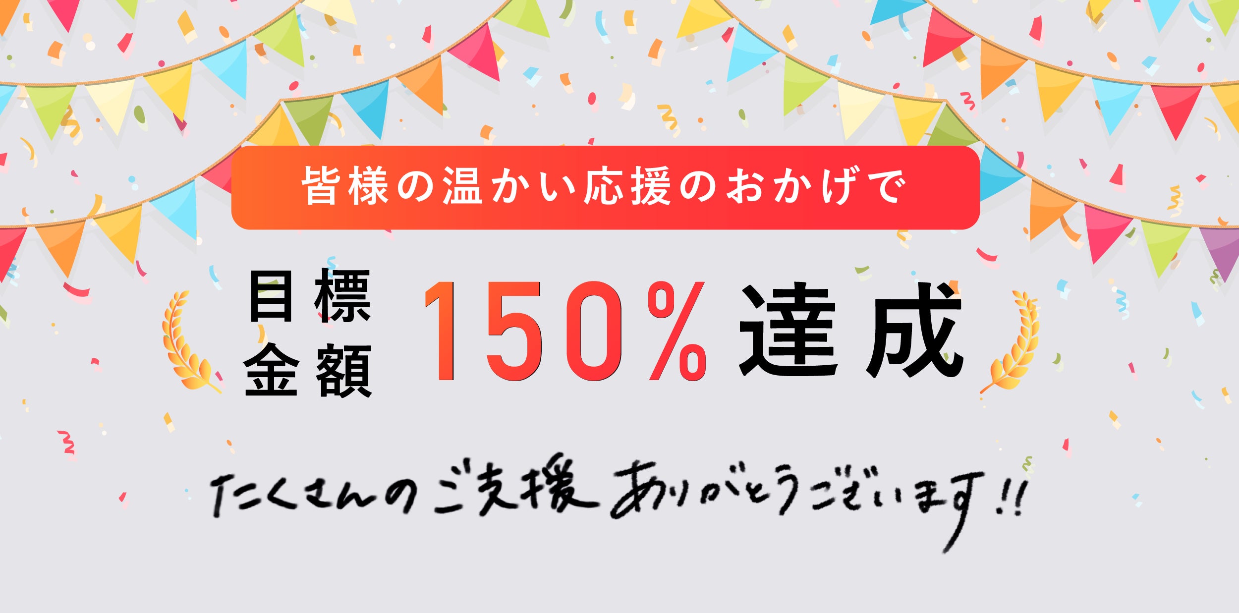 目標金額100%達成の翌日に、150%達成を迎えることができました。